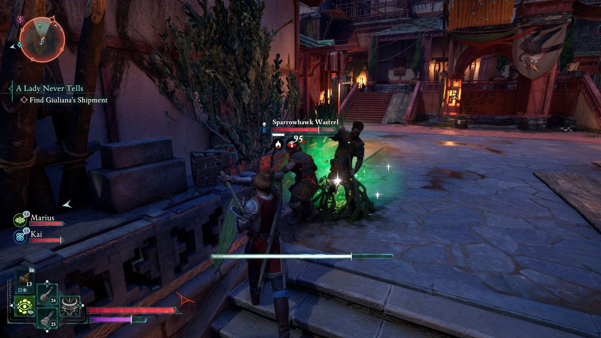 - Musicie z kolei być przygotowani na to, że w lokacjach, które wcześniej były całkowicie bezpieczne, mogą od pewnego momentu pojawiać się wrogowie. Przykładem takiej sytuacji jest miasto Rajski Port z pierwszego regionu. Od momentu pokonania bossa Thalla w głównym queście Przedwczesny koniec możecie być atakowani przez bandytów podczas podróżowania ulicami miasta.