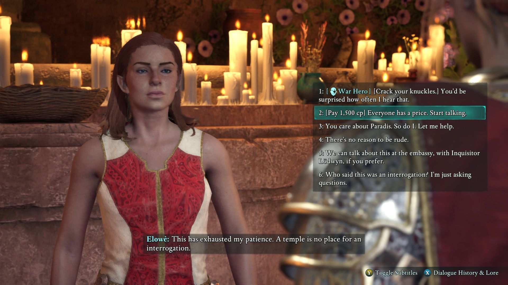 - Pieniądze możecie też wydawać na potrzeby przekupywania rozmówców. Łapówki w grze mogą być duże lub małe. Wydając kilka sztuk złota możecie np. dowiedzieć się o ciekawych wydarzeniach. Duża łapówka może umożliwić uniknięcie walki lub uzyskanie wiedzy pomocnej w zaliczeniu questu. Gra na szczęście pozwala przechodzić zadania na różne sposoby i mając mało złota możecie wybrać inne warianty.