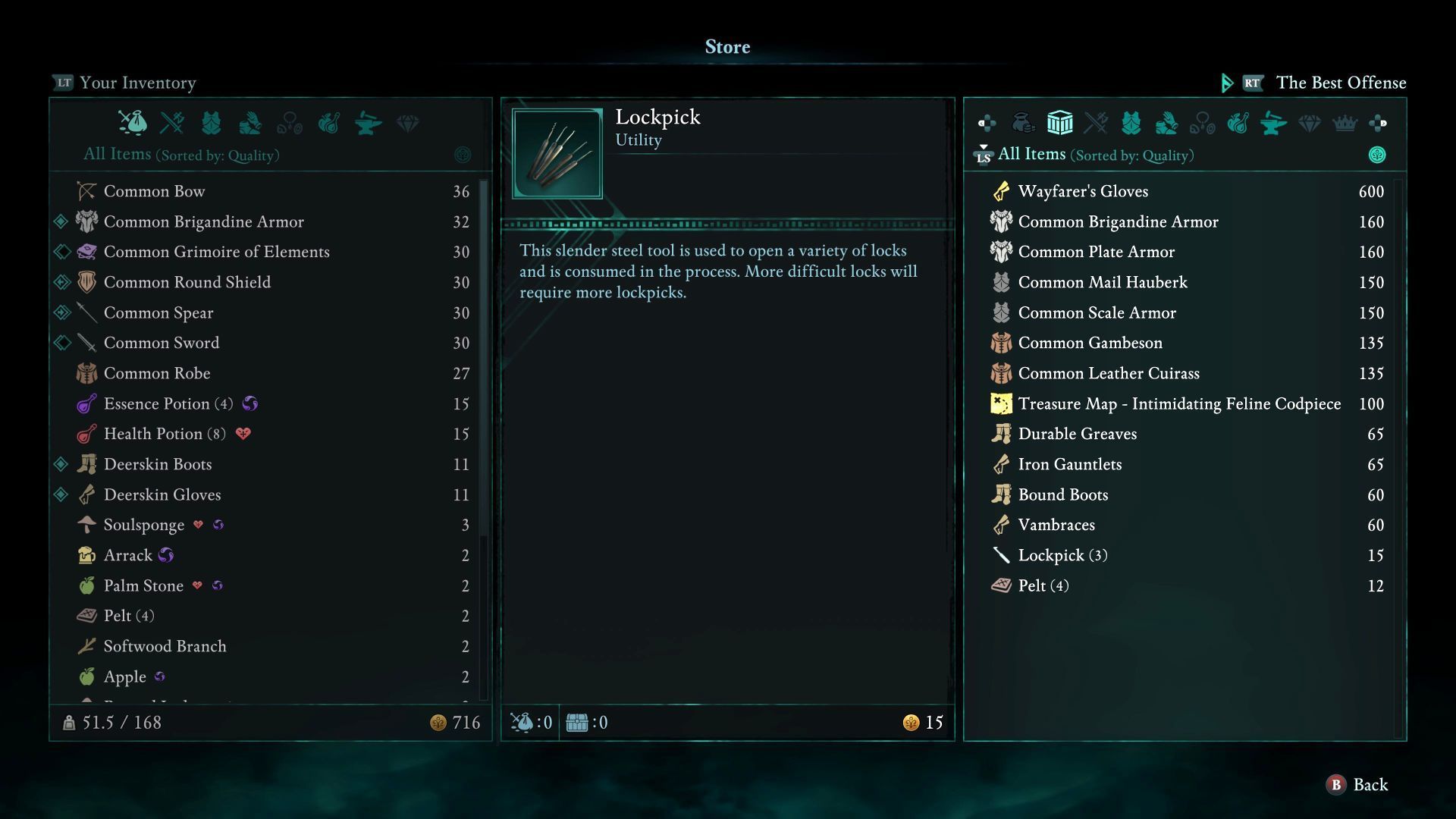 - Żadnego zastosowania nie mają klejnoty i ich sprzedaż jest zawsze w pełni bezpieczna. W przypadku broni i pancerzy porównujcie ich statystyki z przedmiotami, których aktualnie używacie. Pamiętajcie też, że sprzęt można rozłożyć zamiast opcji sprzedaży i zdobyć dzięki temu cenne składniki.