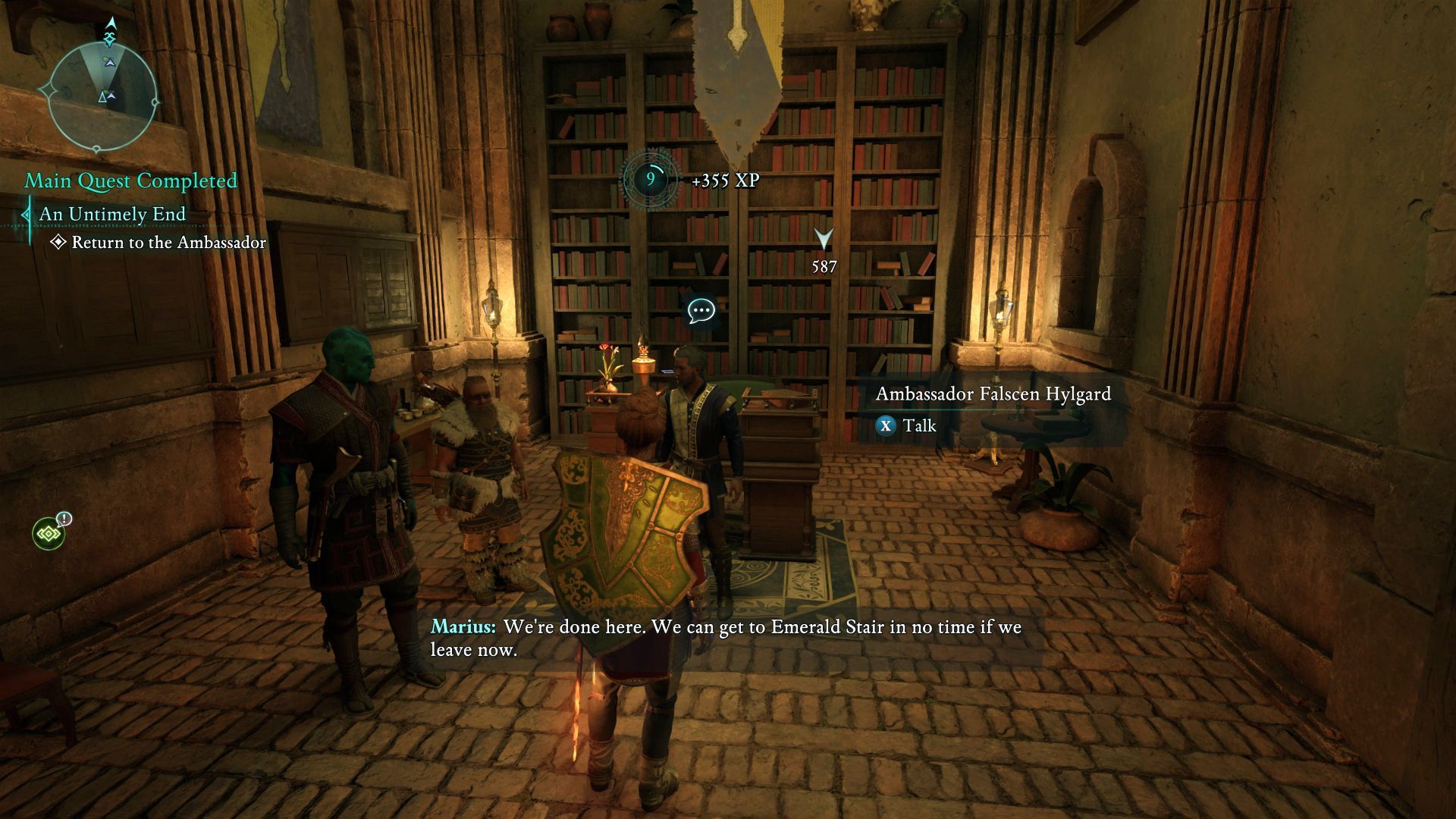 - Możecie już powrócić do Strażnicy w Szmaragdowych Tarasach. Gigantyczny most zwodzony zostanie opuszczony. Porozmawiajcie z Eddą, by potwierdzić chęć wyruszenia do nowej części świata.