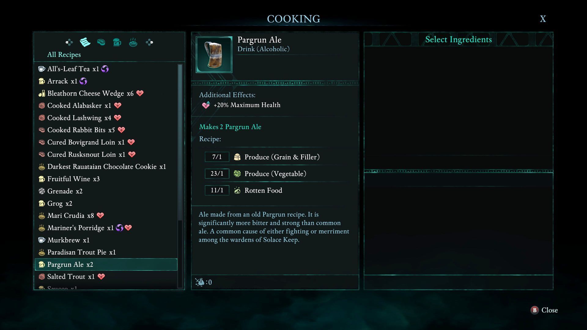- Przetrwanie z drzewka Łowca - Żywność może przywracać o 20% więcej punktów zdrowia. Rozwijając tę umiejętność możecie dodatkowo odblokować lepsze przepisy na potrawy lecznicze.
