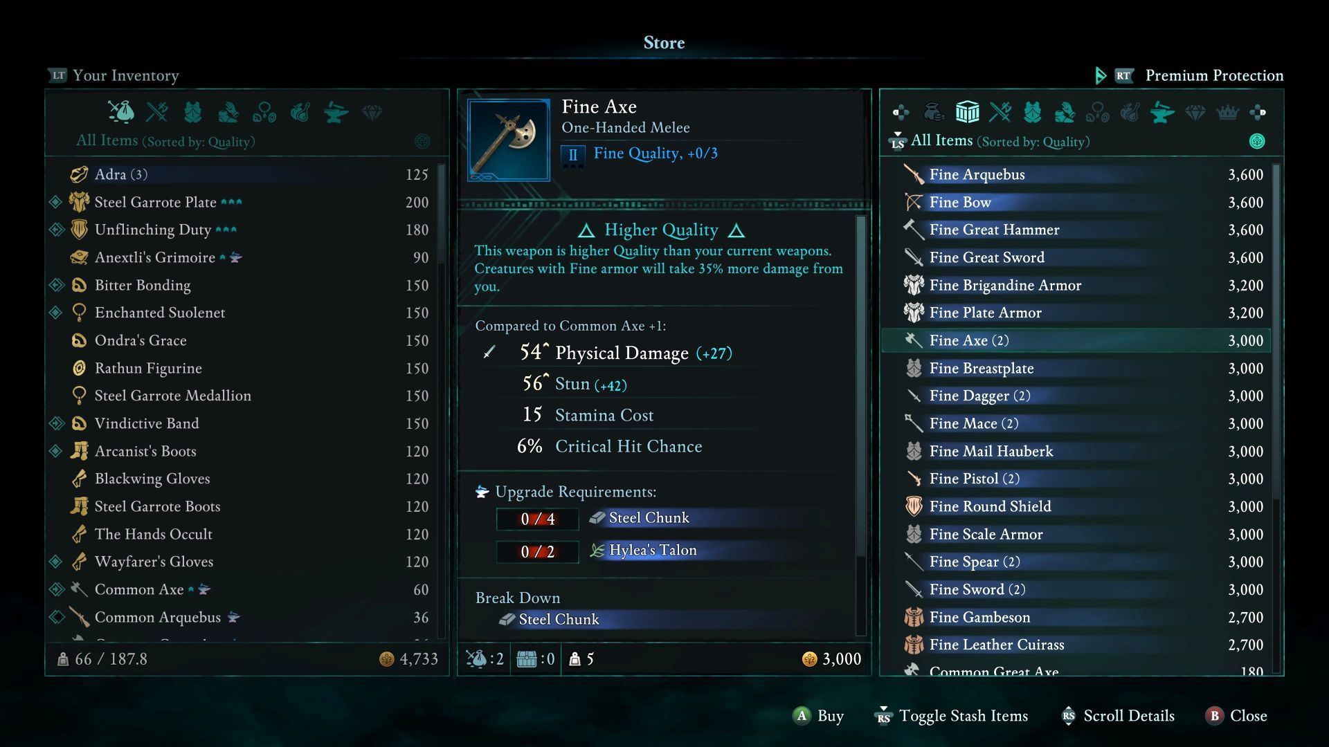 - Możecie od razu kupić / znaleźć przedmiot wyższej jakości (przykład na obrazku) lub odwiedzić obóz drużyny i zużyć materiały rzemieślnicze do ulepszenia przedmiotów niższej jakości. W przypadku broni pozwoli to Wam zadawać większa obrażenia, a w przypadku pancerzy zatrzymywać silniejsze ataki wrogów.