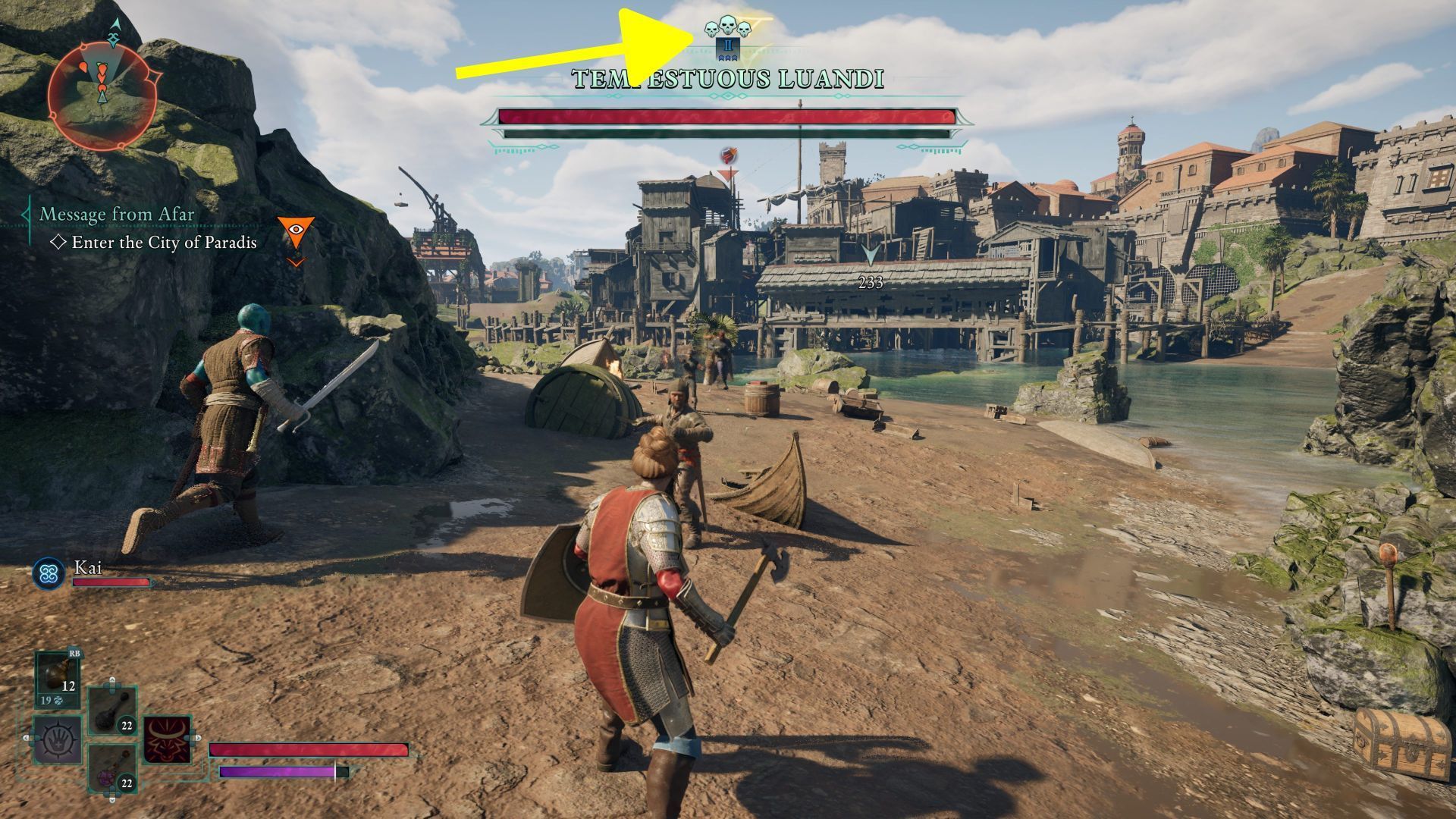 - Niezależnie od poziomu trudności musicie mieć na uwagę dodatkową mechanikę poziomów przedmiotów oraz przeciwników. W grze funkcjonuje system czaszek, które mogą pojawiać się przy nazwach zadań w dzienniku oraz nazwach przeciwników w grze (aż 3 czaszki w przykładzie na obrazku).