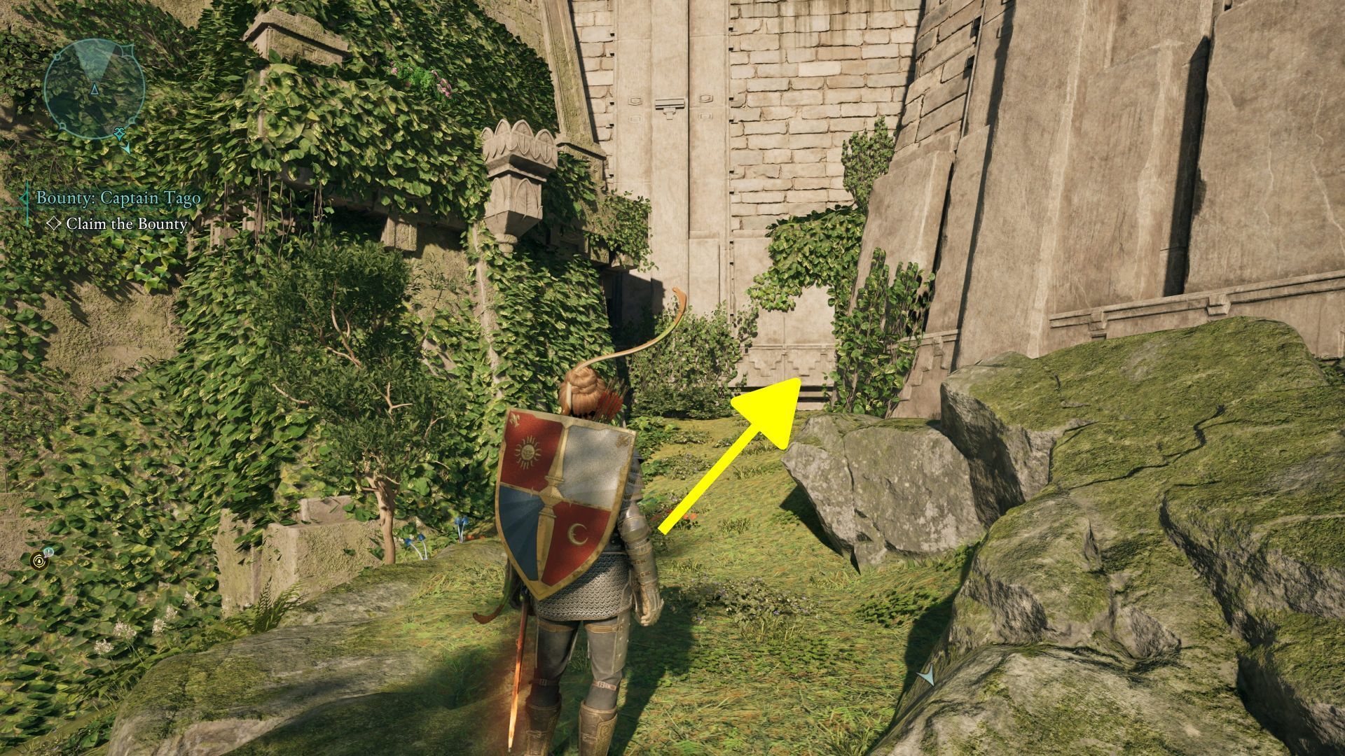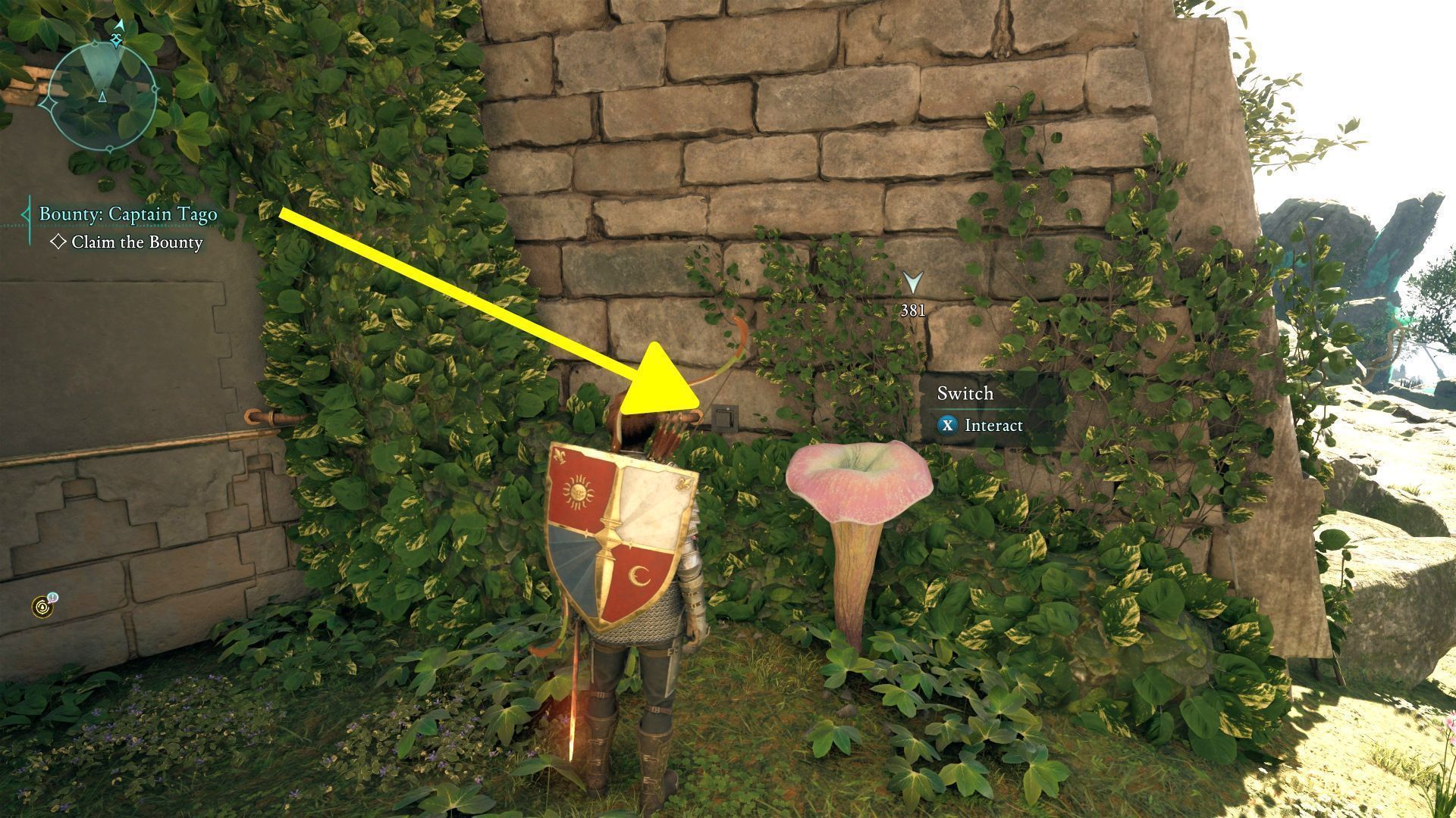 Zbadajcie zewnętrzne mury miasta obok wschodniego wyjścia z Rajskiego Portu i jednego z punktów szybkiej podróży. W miejscu z powyższych obrazków jest sekretny przycisk.