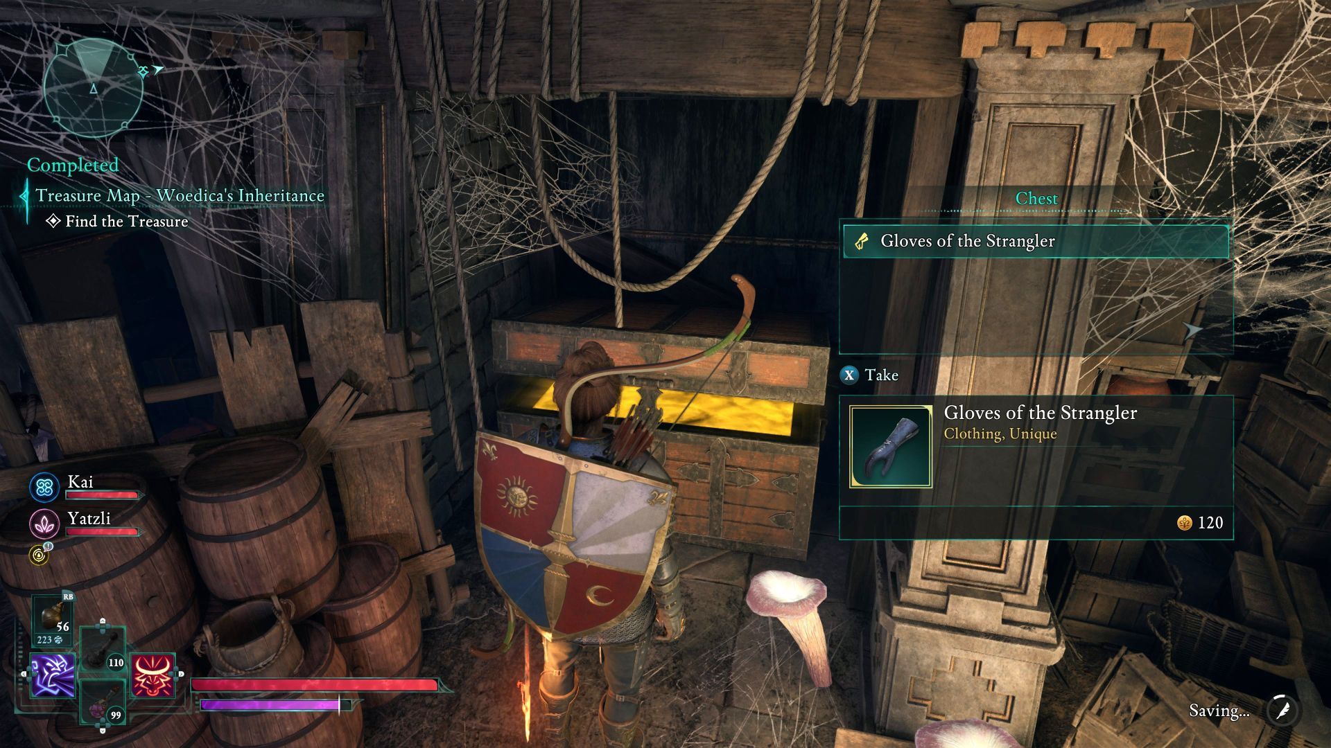 Wciśnięcie przycisku odblokuje sekretne przejście do komnaty ze skrzynią. Skrywa ona unikalne Rękawice Dusicielki.