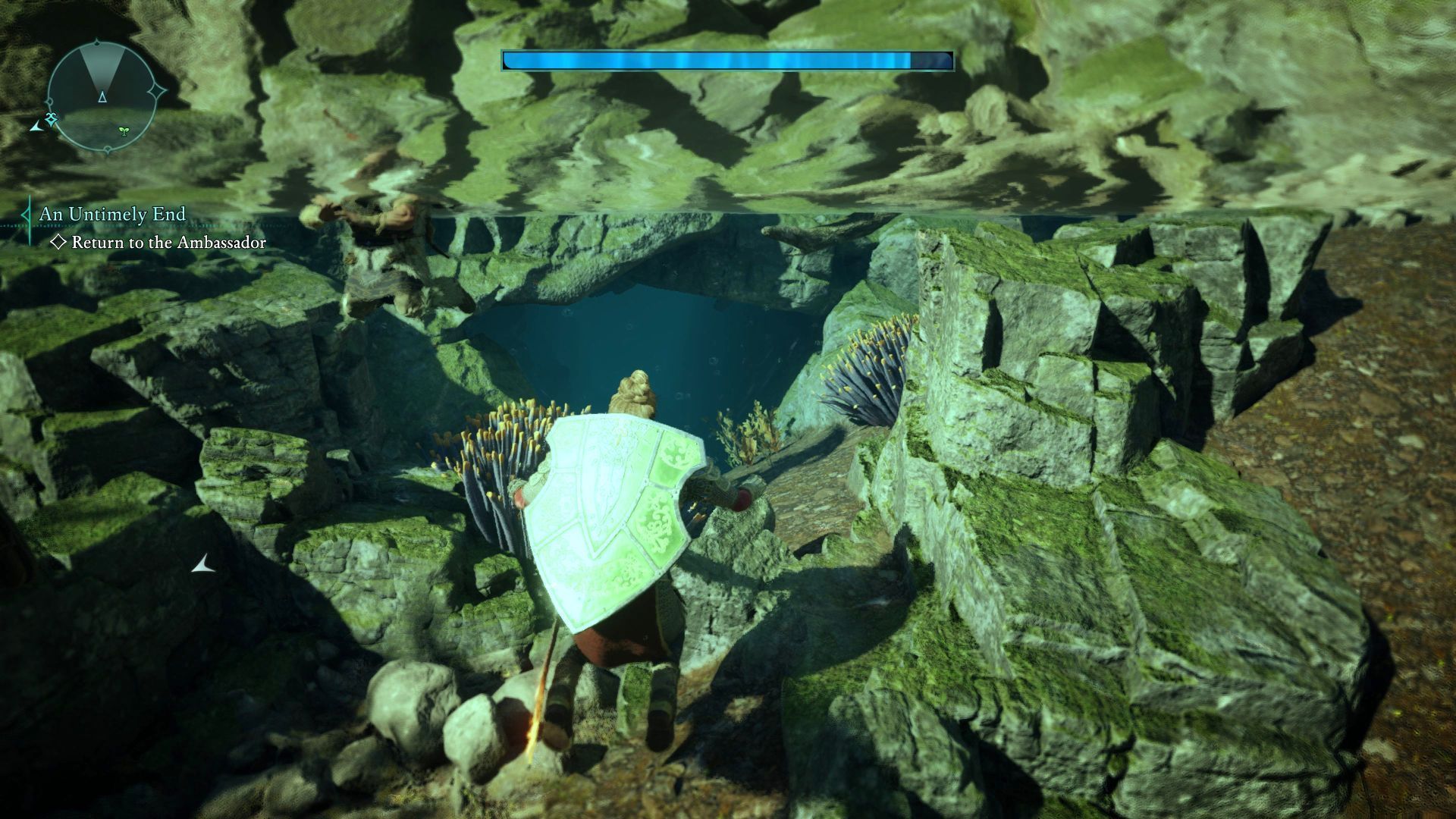 Dotrzyjcie do rzeki na zachód od Wysokiego miasta w Rajskim Porcie. Możecie tu zanurkować i znaleźć podwodny tunel pokazany na obrazku. Trzeba przez niego przepłynąć.
