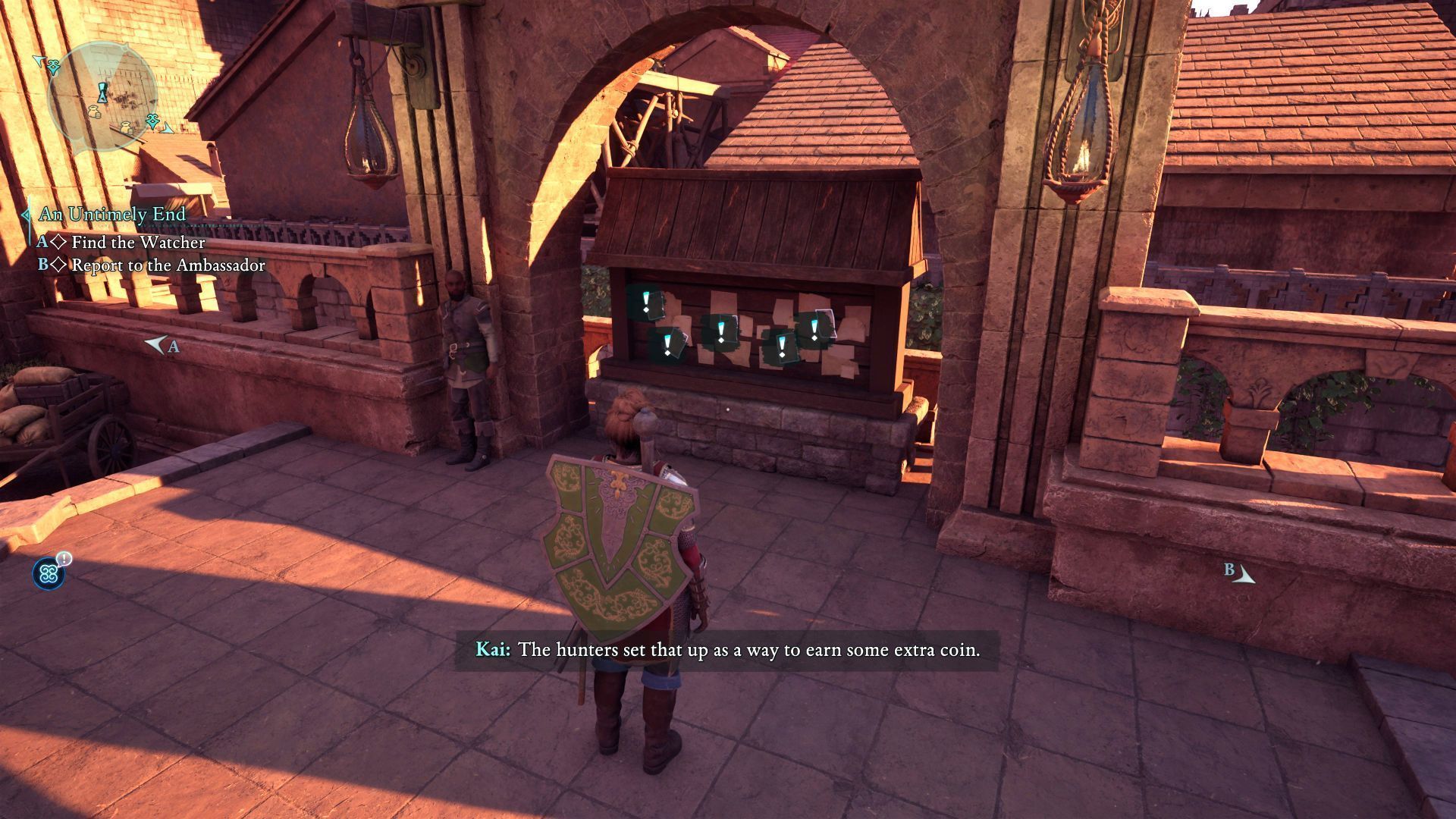 Komentarz: Odwiedzajcie miasta / osady w czterech pierwszych regionach. W każdej dużej sojuszniczej lokacji znajdziecie tablice łowców nagród (przykładowa na obrazku) i możecie z nich odbierać zlecenia zabicia elitarnych wrogów. Pamiętajcie żeby zawsze zbierać trofea od pokonanych przeciwników i powracać z nimi od osoby obsługującej tablicę. Dopiero wtedy otrzymacie nagrody i zlecenia zostaną ukończone.