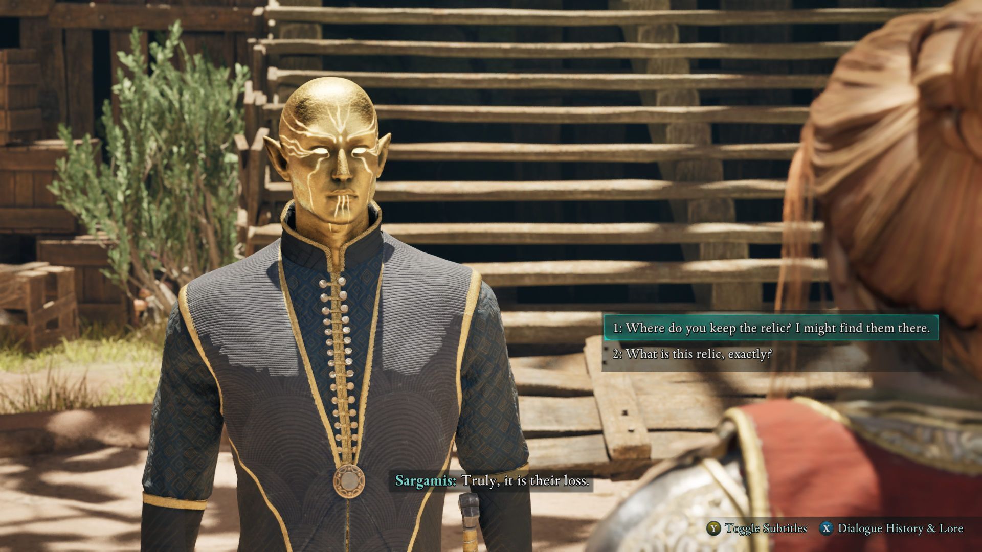 Komentarz: Osiągnięcie to można przegapić i wymaga ona określonych kroków podczas pobocznego zadania Kroczący o Świcie z regionu Świtobrzeg. Musicie wykonać wszystkie kroki na życzenie Sargamisa (powyższy obrazek) i umieścić relikt w posągu. Po nieudanej próbie i kolejnej rozmowie z Wyrocznią możecie zadecydować o umieszczeniu własnej duszy w posągu. Potwierdźcie kilka razy tę akcję - Wasza postać zginie, ale odblokuje się trofeum.