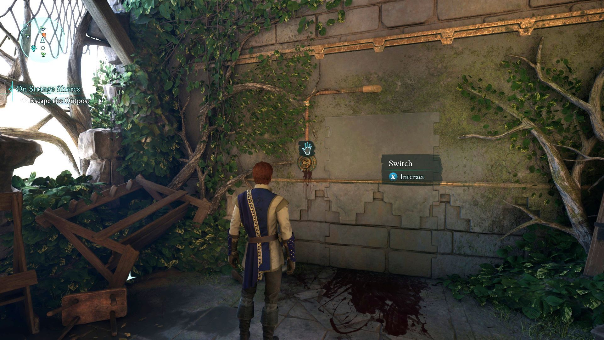 Komentarz: Osiągnięcie to można przegapić, ale w razie potrzeby możecie rozpocząć nową grę i ponownie przejść fragment prologu. Północny Fort to pierwsza mała lokacja gry. Dotrzyjcie w niej do dużego zielonego kryształu w pierwszym obszarze fortu. W okolicy do odnalezienia są ślady krwi oraz sekretny przycisk (powyższy obrazek), który odblokuje ukryte pomieszczenie.