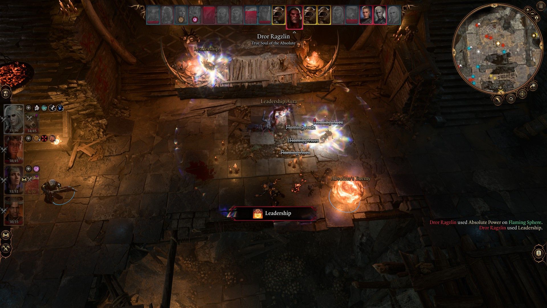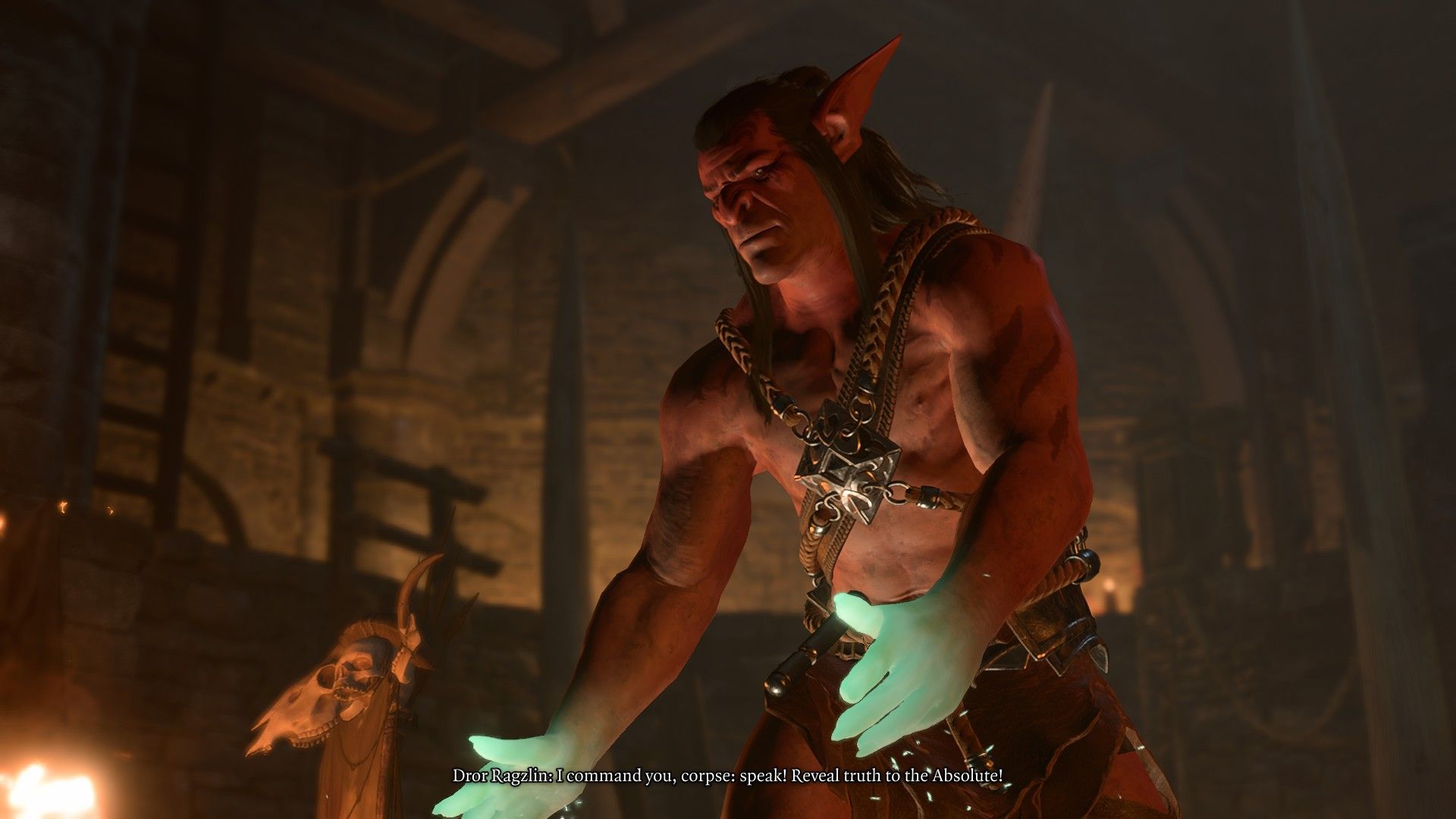 Dror Ragzlin znajduje się w sali tronowej opuszczonej świątyni wewnątrz obozu goblinów. Gdy pierwszy raz wejdziecie do pomieszczenia, zastaniecie go przesłuchującego martwego łupieżcę umysłów. Ragzlin zażąda, byście zostali. Jeśli wzbudzicie jego podejrzenia, zaatakuje was, lecz jeśli pomyślnie zakończy przesłuchanie, zorientuje się, że to wy macie artefakt, którego szuka. Musicie zatem sabotować przesłuchanie tak, aby Ragzlin się nie zorientował.