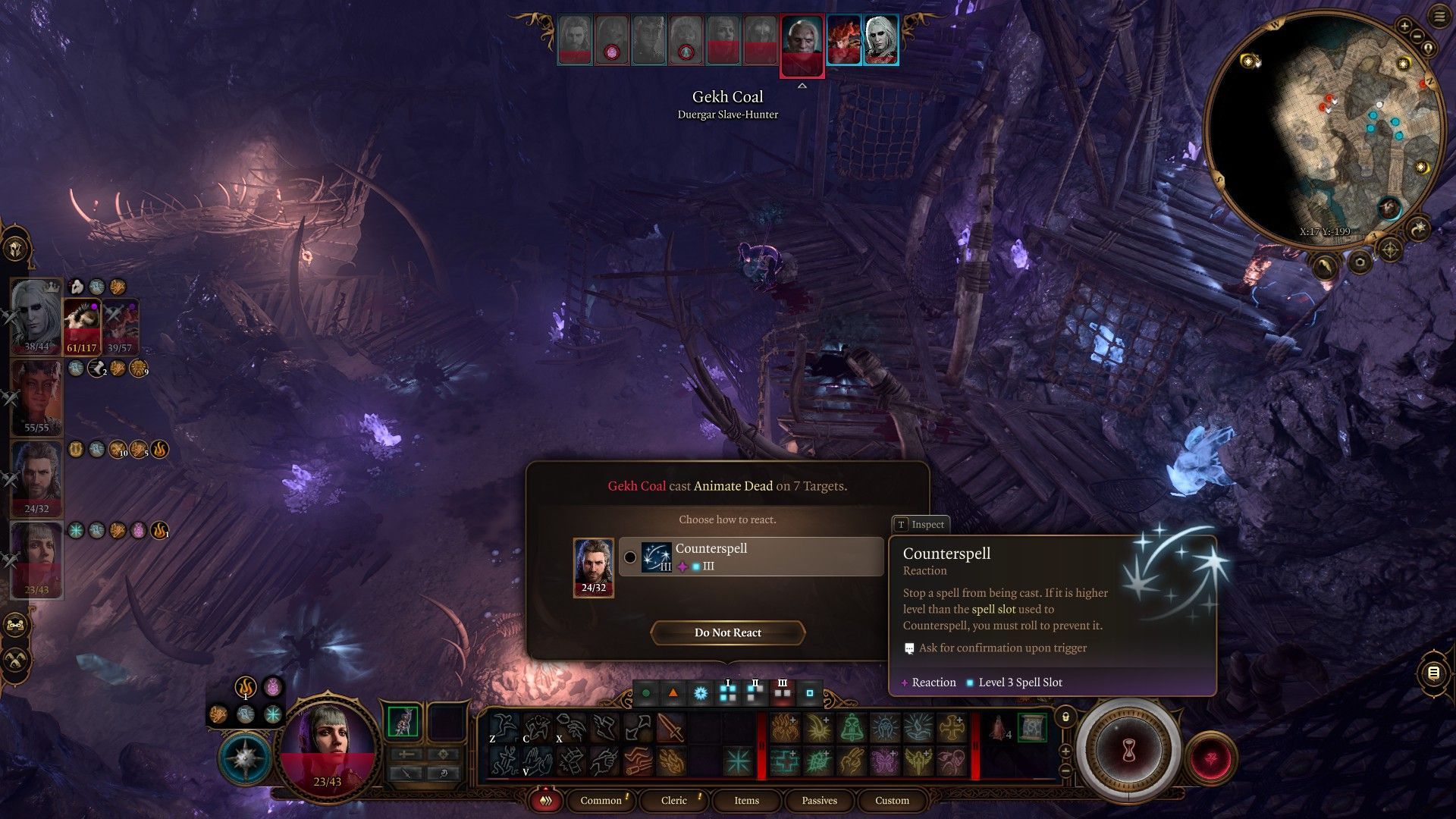 Głównym zagrożeniem jest dla was Gekh Coal, przywódca duergarów. Potrafi on rzucać kontrzaklęcia, a podczas swojej pierwszej tury spróbuje ożywić zwłoki porozrzucane po plaży, co da mu ogromną przewagę liczebną nad waszą drużyną. Musicie unieszkodliwić go jak najszybciej - jeśli wykuliście już broń sussurową, rozważcie uciszenie go celnym ciosem. W przeciwnym wypadku polecamy wziąć ze sobą Gale'a lub Wylla - na poziomie piątym mogą nauczyć się kontrzaklęcia i powstrzymać Gekha przed ożywieniem trupów. Jak najszybciej wyeliminujcie przywódcę by ułatwić sobie resztę starcia.