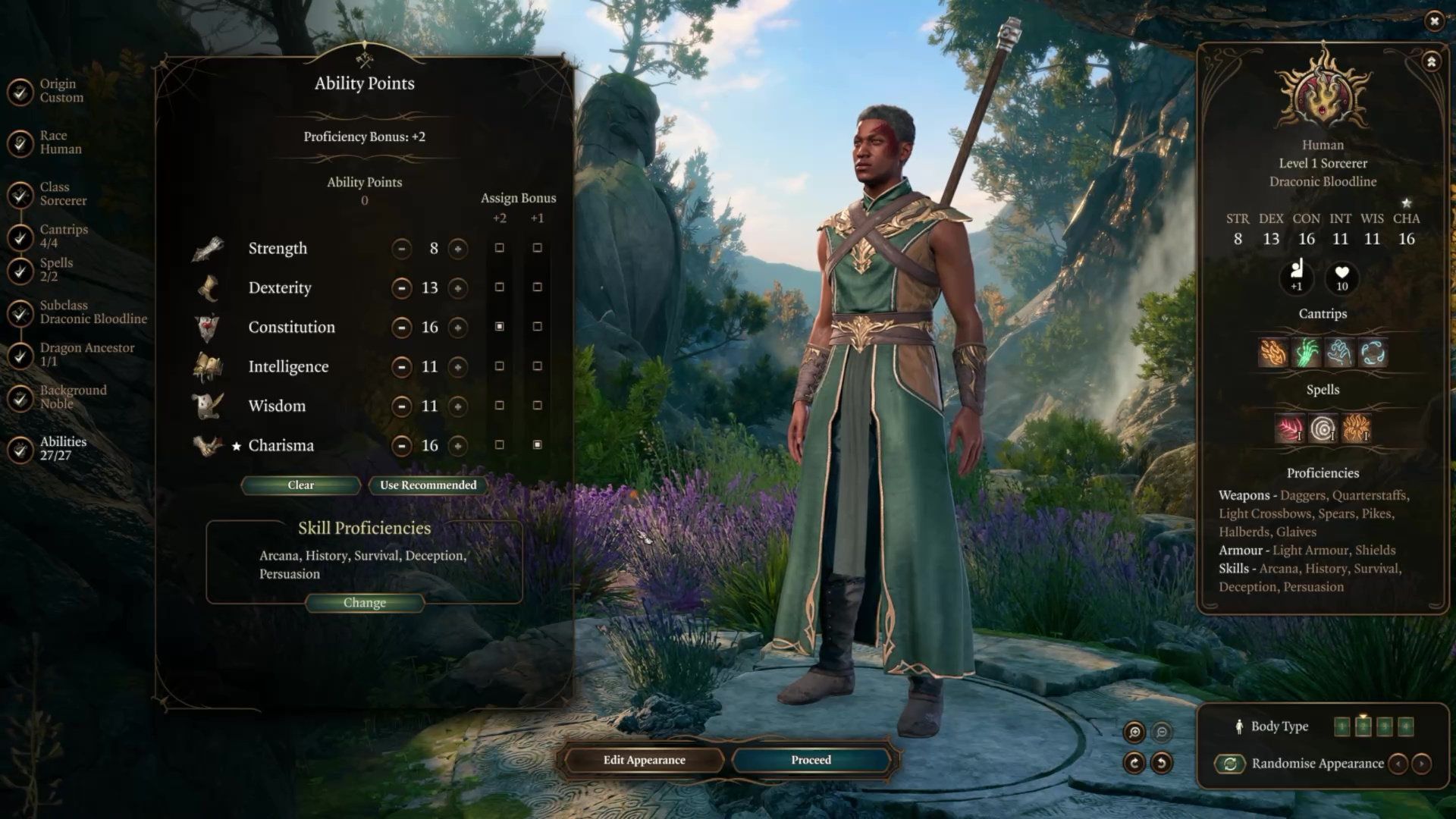 Przy rozdawaniu punktów zdolności w kreatorze postaci koniecznie zadbajcie o wysoki poziom Charyzmy. Poza nią, rozważcie zagospodarowanie części dostępnych punktów w: