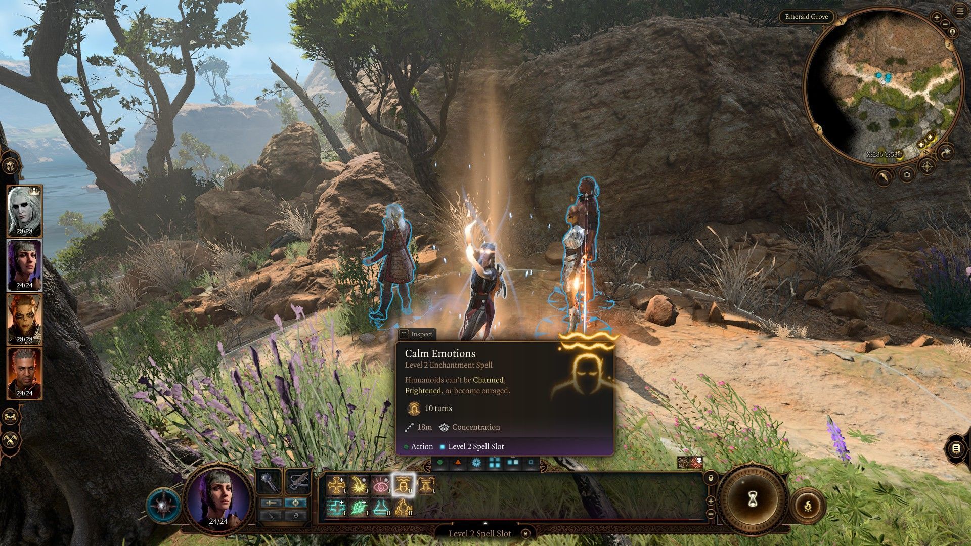 Zwróćcie także uwagę na gniazdo harpii na pobliskiej skale. Możecie dostać się tam serią skoków, idąc ścieżką za skałą, na której siedziała śpiewająca harpia. Możecie także skorzystać z rasowej cechy Lae'zel by zwiększyć swoją odległość skoków i wskoczyć do gniazda z pobliskiego klifu. W gnieździe znajdziecie pierścień, który pozwoli wam rzucać zaklęcie kolorowy rozprysk.