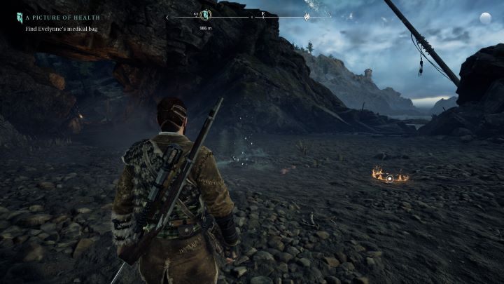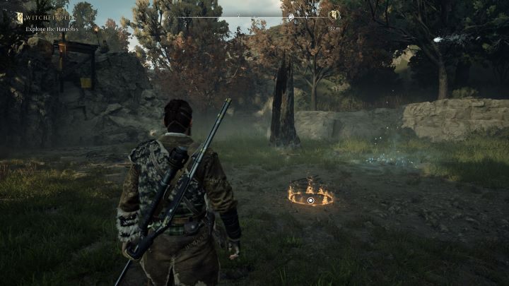 - Lokacja: W jaskini w obszarze na północny wschód od obozu myśliwskiego, za kamienną barierą, którą można zniszczyć umiejętnością Wybuchu.