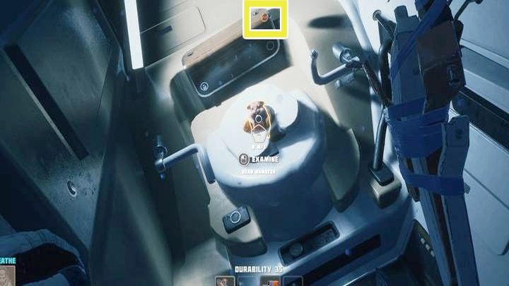 Po wyjściu z kapsuły w 1 rozdziale gry Breathedge, popatrz w prawo. Skierujcie się do fragmentu oznaczonego (1) na powyższym zdjęciu. Koło toalety znajdziecie lewitującą Szawarmę. Jest jednym ze składników akceleratora i zebranie jej odblokuje nowy schemat.