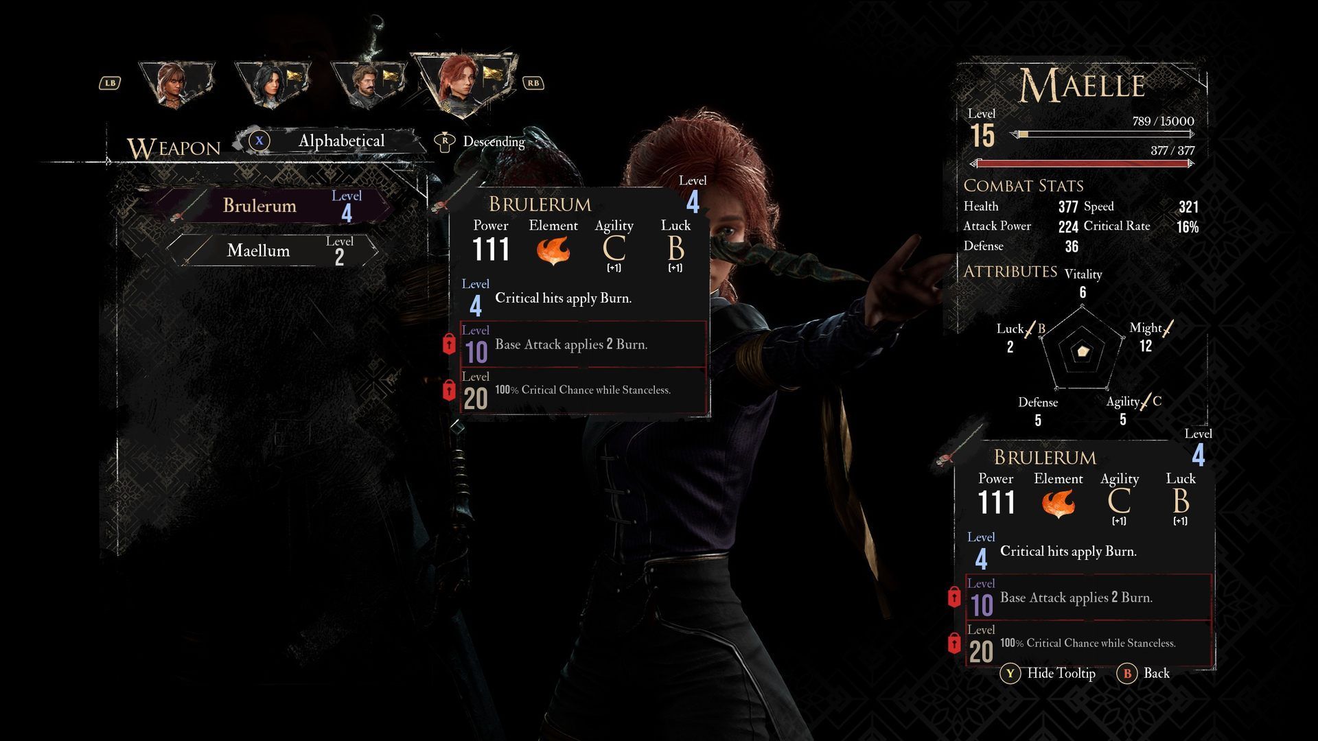 Zwróćcie również uwagę, że niektóre umiejętności Maelle mają dodatkowe efekty, jeżeli jesteście w odpowiedniej postawie. Przykładowo Deszcze Ognia nakłada dodatkowe ładunki płonięcia przy każdym trafieniu, jeżeli bohaterka jest w postawie defensywnej. Zwracajcie uwagę na zależności oraz synergie, aby tworzyć zaawansowane ciągi dewastujących ataków.