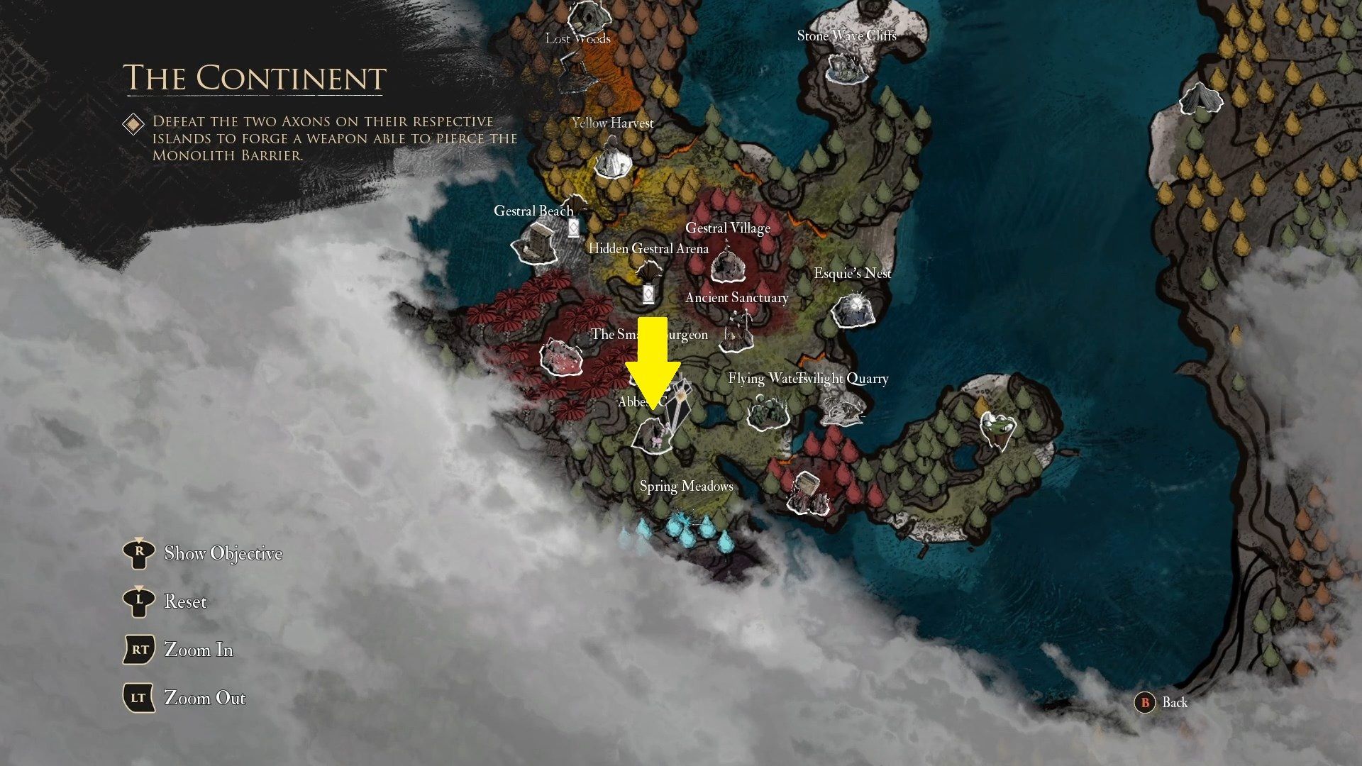 Chromatyczny Abbest znajduje się w Jaskini Abbesta, małym, opcjonalnym obszarze tuż na północ od wiosennych łąk. Choć możecie tam trafić bardzo wcześnie, przeciwnik ten prawdopodobnie będzie dla was za silny do czasu aktu drugiego. Boss jest opcjonalny i jego pokonanie nie jest wymagane do dokonaniu postępów w grze.