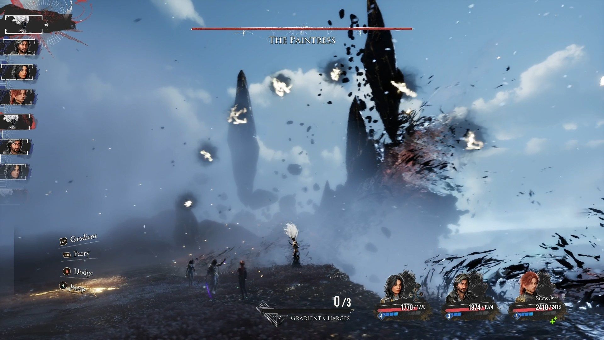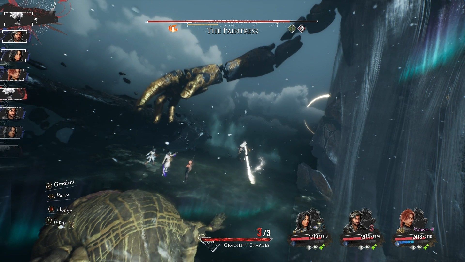 - Meteory otchłani - Malarka tworzy siedem małych meteorów, które lewitują nad jej głową. Każdy meteor po kolei błyska, po czym niezwykle szybko wlatuje w członka drużyny. Atak ten może was ogłuszyć. Polecamy robić uniki - okienko parowania jest niewielkie i mylące. Róbcie unik ułamek sekundy po zobaczeniu błysku.