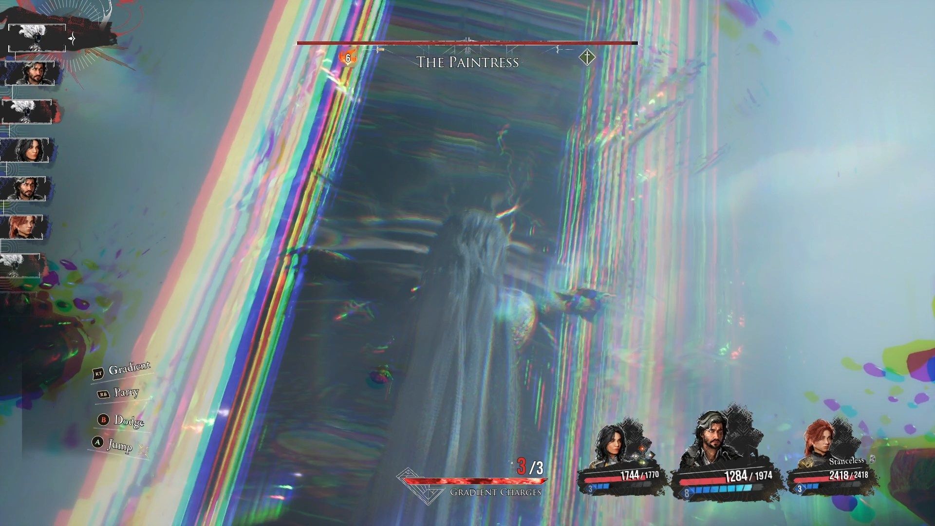 - Atak gradientowy - Malarka podlatuje do członka drużyny i wykonuje atak gradientowy. Wykonajcie kontrę gradientową z bardzo drobnym opóźnieniem po tym, jak świat zmieni kolor.