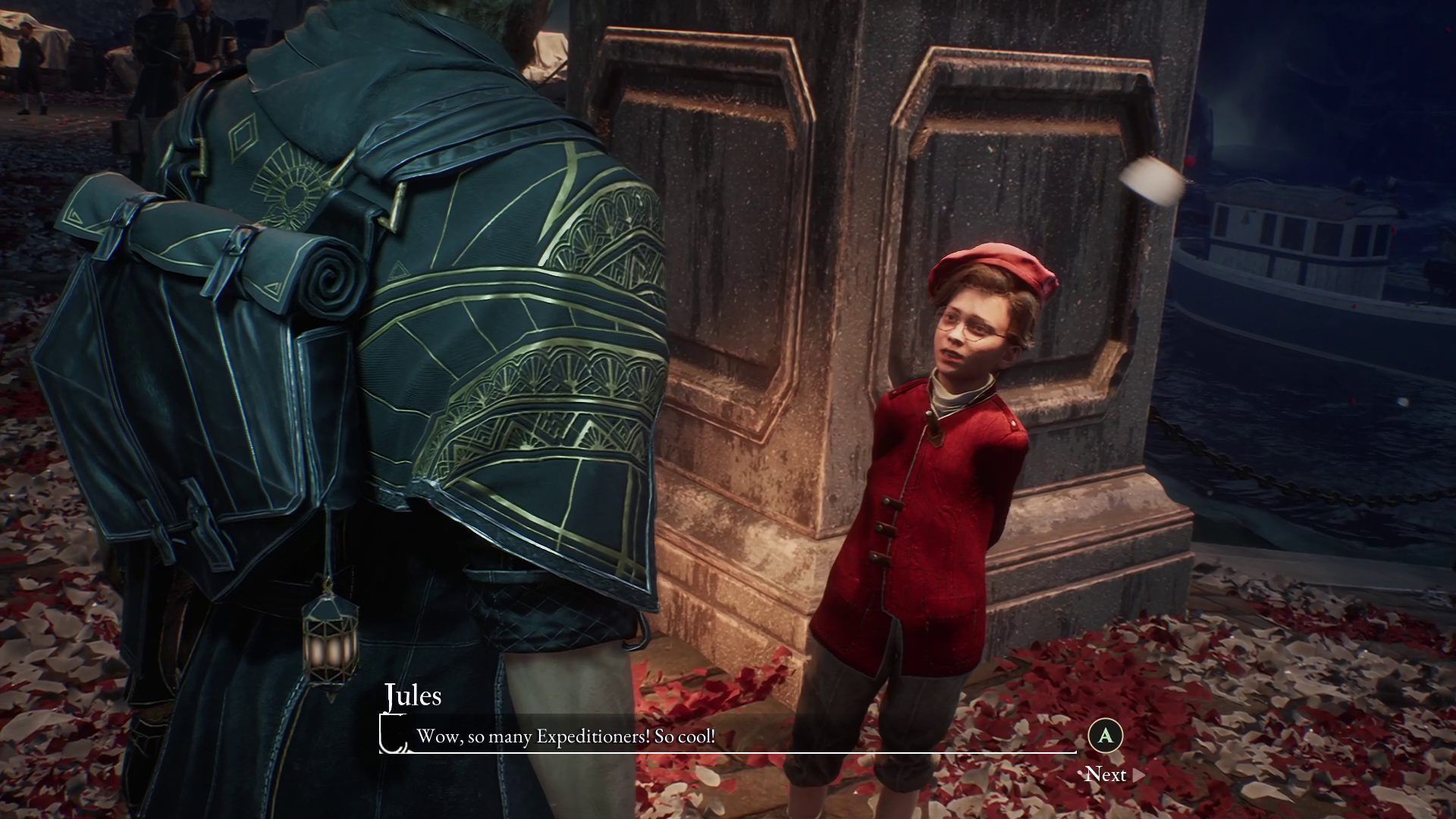 Z synem Richarda, Julesem, spotkacie się w późniejszej części prologu, podczas festiwalu ekspedycji. Jeżeli wręczycie mu strój od ojca, zostaniecie wynagrodzeni specjalnym, czerwonym wdziankiem dla Gustave'a.