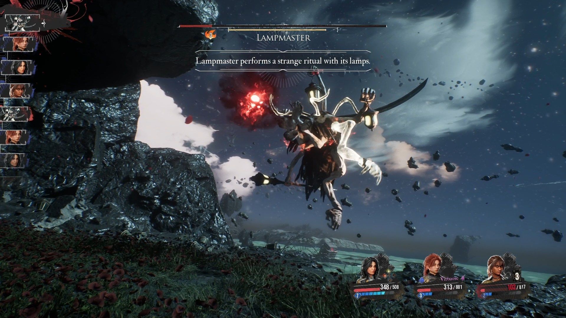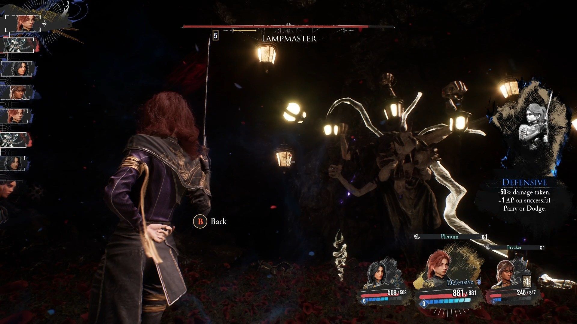 Lampmistrz jest odporny na światło i neutralny na wszystko inne. Gdy zostanie mu malutki ułamek zdrowia przestanie otrzymywać on obrażenia - w jego następnej turze zacznie się druga faza walki. Gdy zauważycie, że wasze ataki przestały ranić bossa, zacznijcie leczyć waszych członków drużyny i używać przedmiotów by rozpocząć drugą fazę w pełni sił.