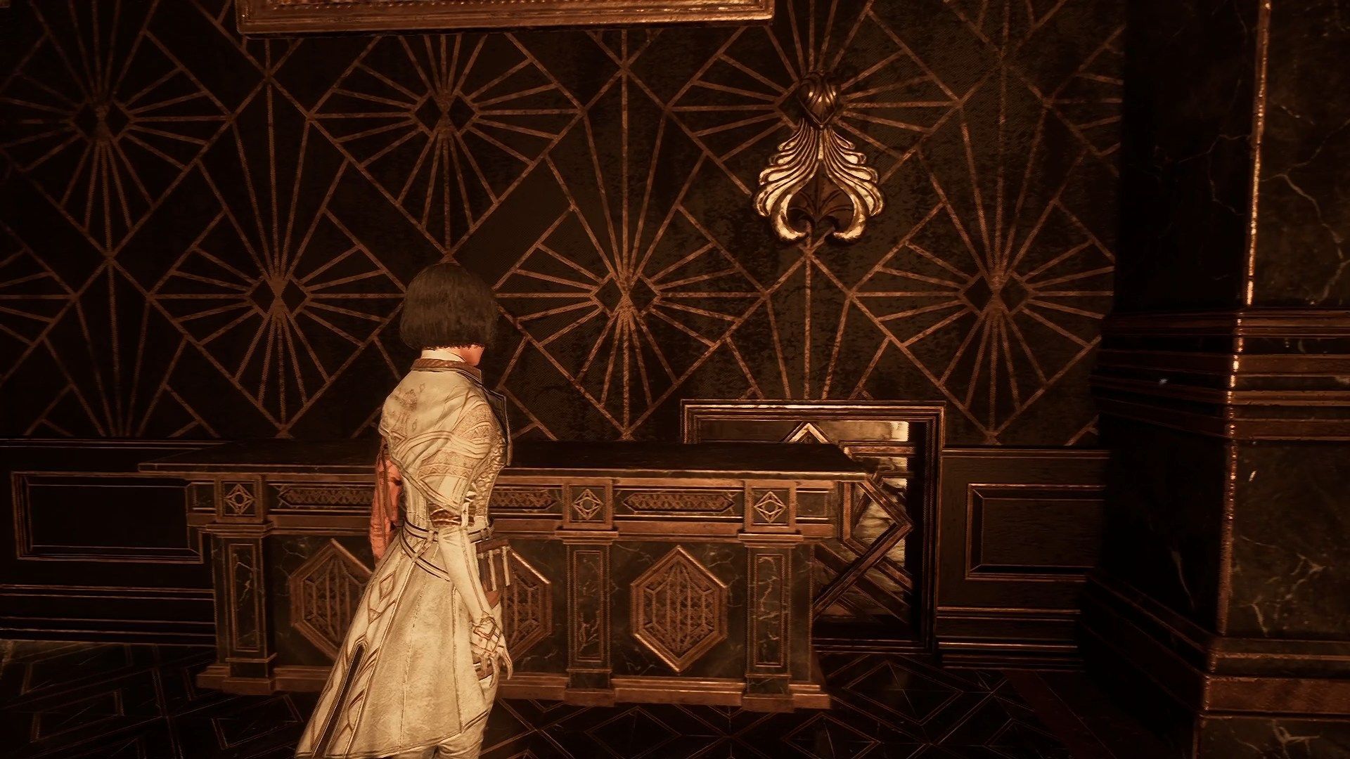 - Udajcie się do jadalni wewnątrz posiadłości. Musicie wejść w interakcję z czterema przełącznikami - jeden jest nad regałem obok kominka, drugi na ścianie obok fortepianu, trzeci na ścianie obok wazonu z czerwonymi kwiatami, a czwarty na jednej z kolumn wspierających sufit. Otworzycie w ten sposób przejście obok kominka, za którym znajdziecie płytę.