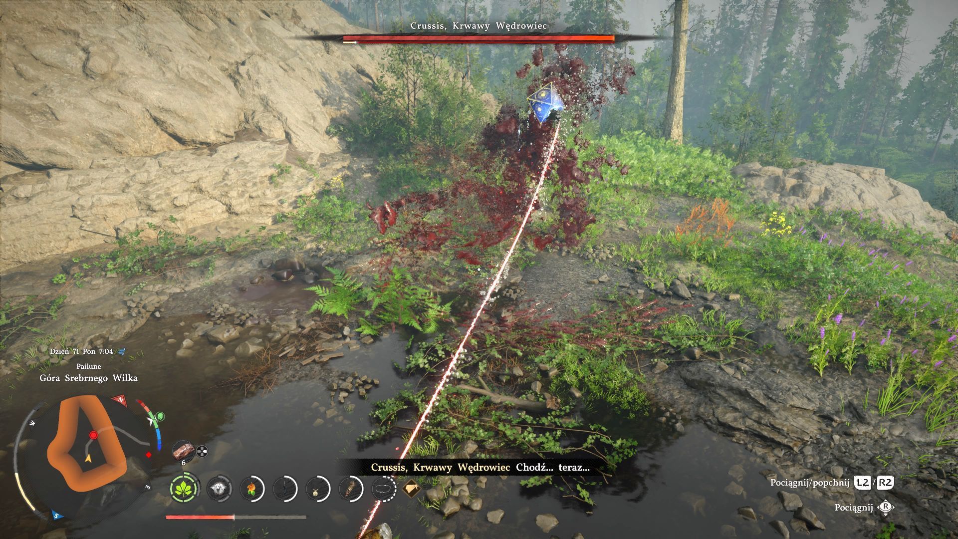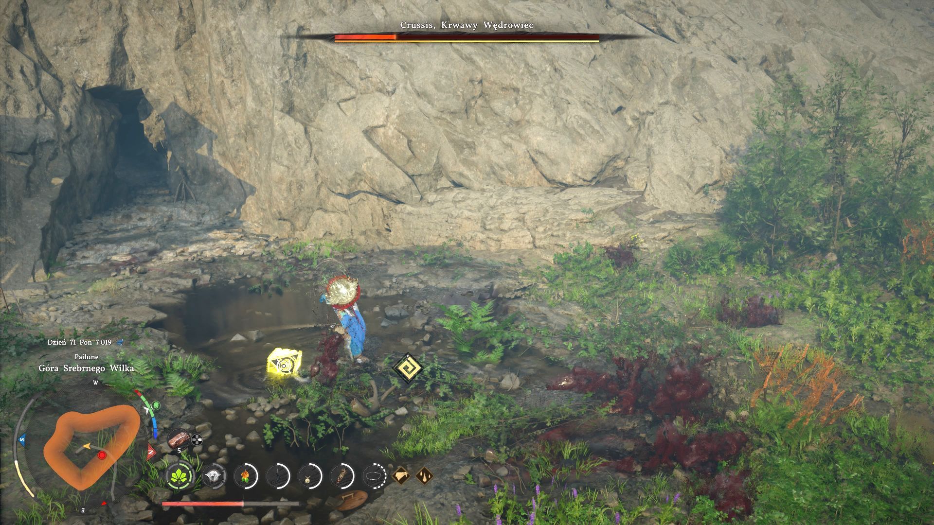 - Na poszukiwania bossa Crussis, Krwawy Wędrowiec możecie wyruszyć w ramach zadania Polowanie na czerwień z linii fabularnej Krwawy szlak. Powinna ona stać się dostępna po ukończeniu wszystkich zadań z linii Rozdroże Sukcesji. Obie te linie fabularne wchodzą w skład większej grupy pobocznych zadań Milicjant Pailune.