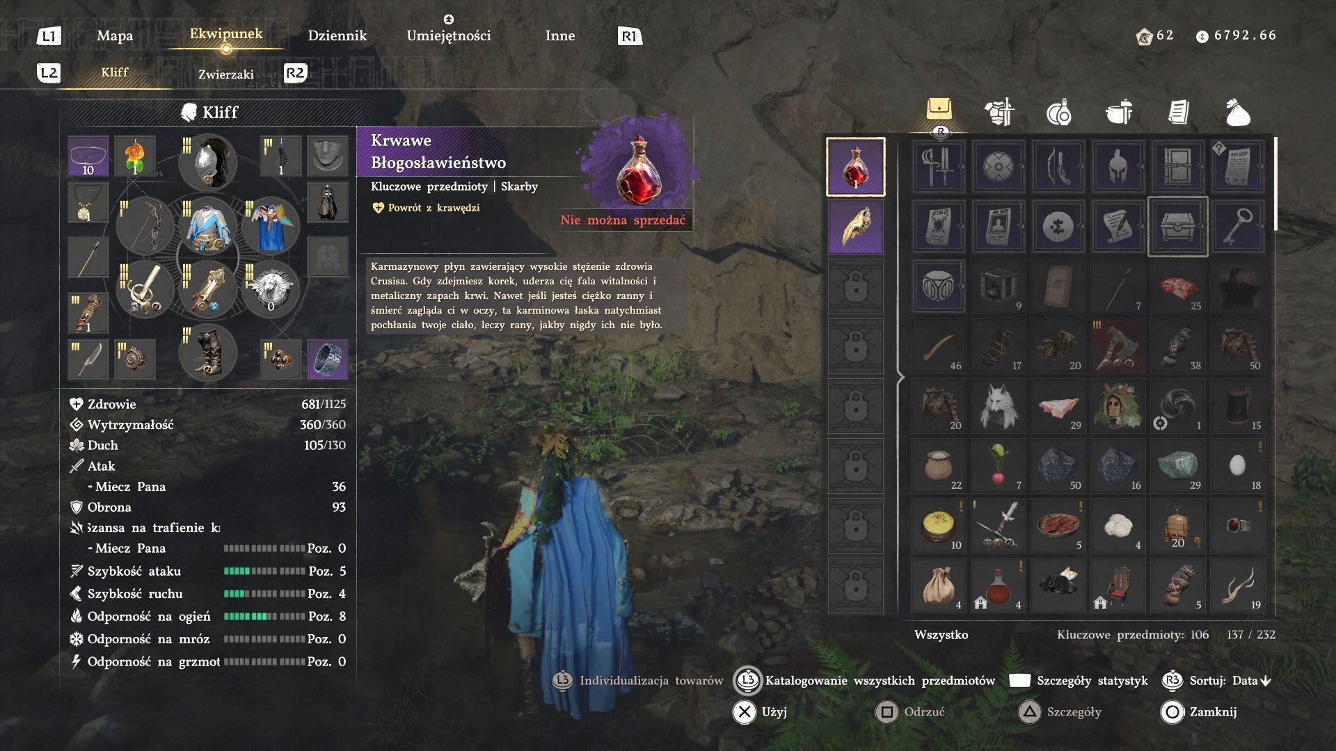 - Krwawe Błogosławieństwo - to bardzo rzadki przedmiot zużywalny, który po spożyciu pozwala powrócić do pełni sił, nawet jeśli bohater był na skraju śmierci.