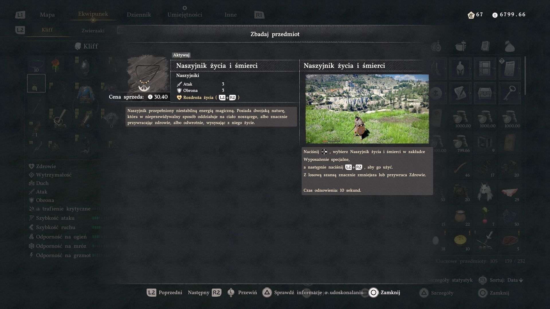 - Dodatkowo rozpocznie się mały poboczny quest Znikające zagrożenie. Spotkajcie się z milicją w mieście Pailune, a otrzymacie 7 srebrników oraz Naszyjnik życia i śmierci. To nietypowy przedmiot, bo po wybraniu go w menu wyposażenia specjalnego może losowo przydzielać lub odbierać punkty zdrowia. Dodatkowo oferuje premie do ataku i obrony.