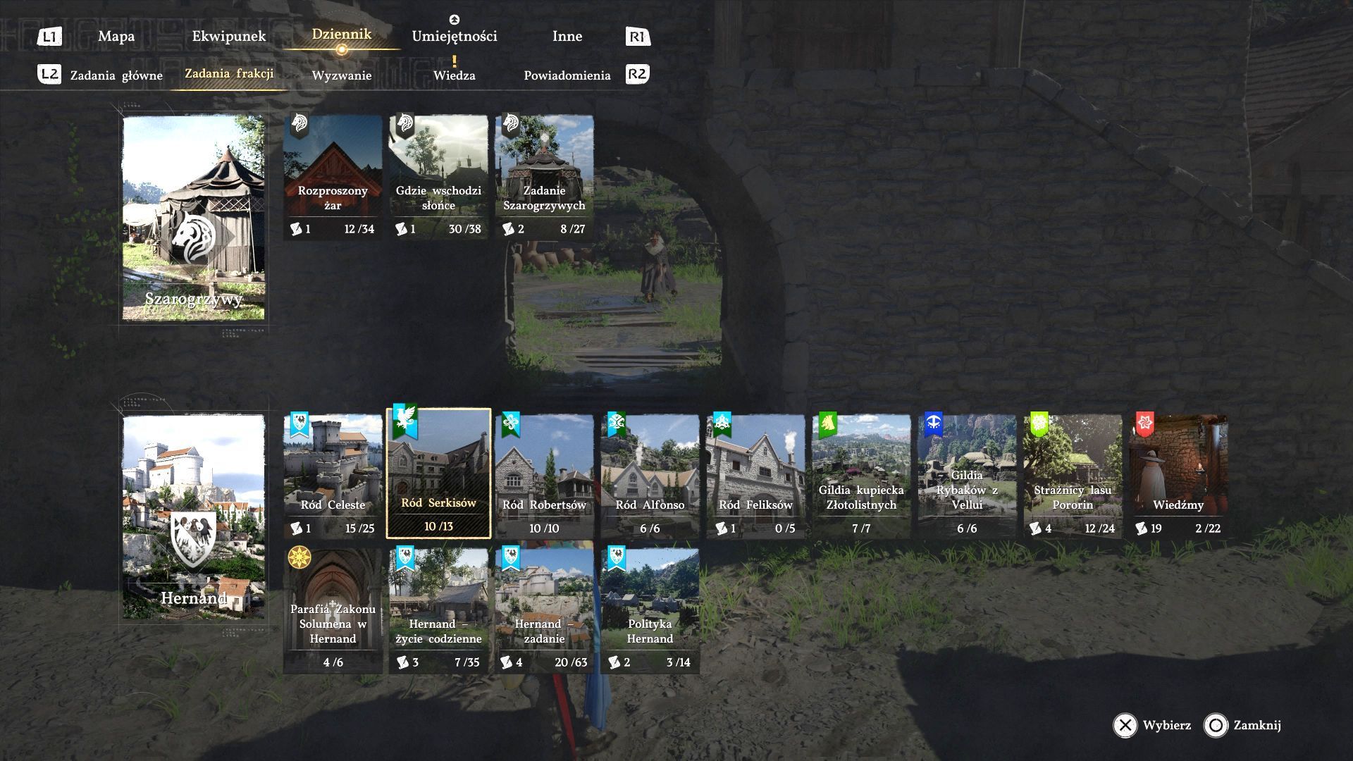 Przejdźcie do zakładki Zadania frakcji i skupcie się na sekcji pobocznych questów regionu Hernand. Linie fabularne, na których musicie się skupić, to: