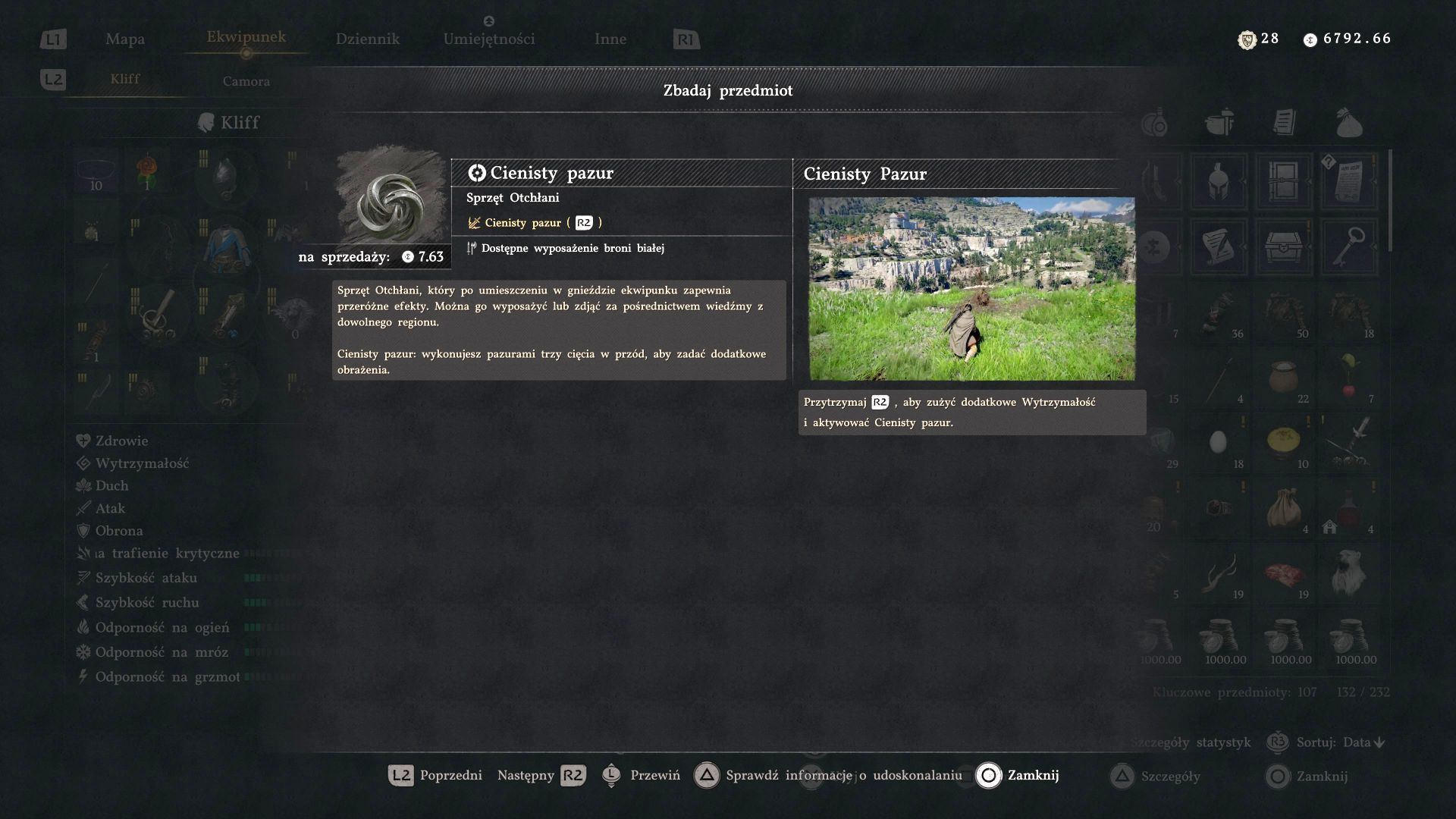 - Cienisty pazur - to sprzęt Otchłani, który po zamontowaniu w broni pozwala na wykonanie trzech cięć pazurami.