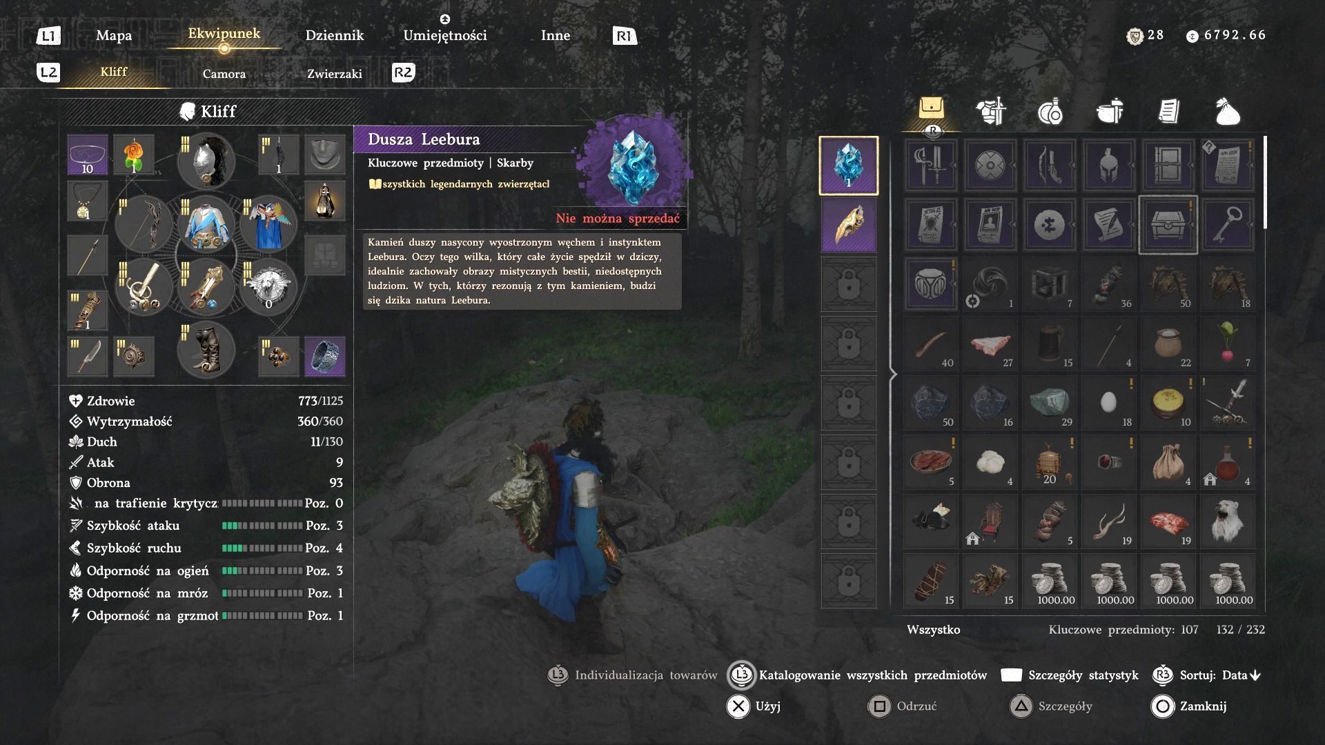 - Dusza Leebura - możecie znaleźć ją w inwentarzu wśród kluczowych przedmiotów. Po zużyciu duszy możecie poznać lokalizacje innych legendarnych zwierząt.