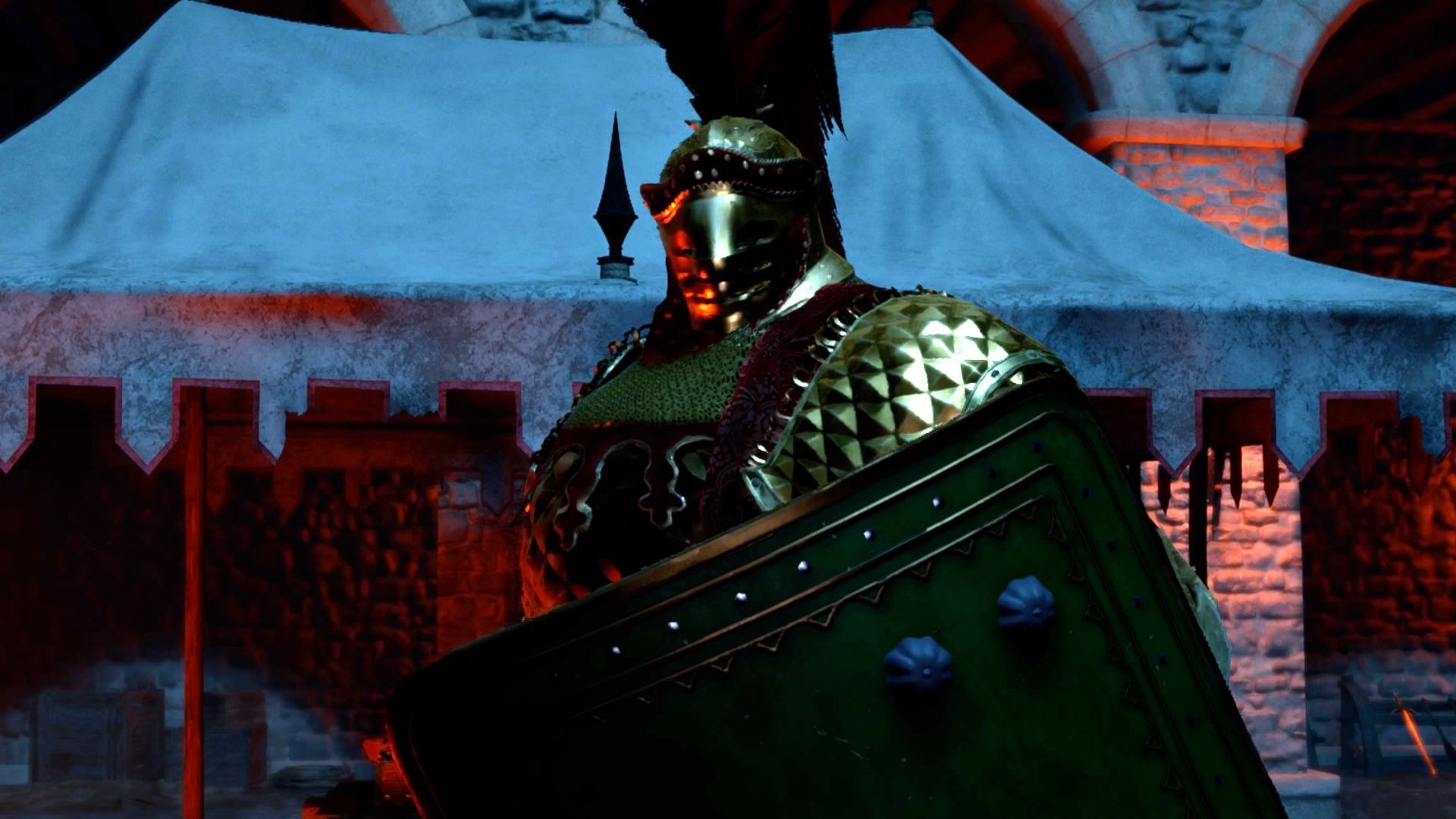 - Jednym z głównych utrudnień tego pojedynku jest to, że po niektórych atakach Przeklętego rycerza pojawia się jego sobowtór (przykład na obrazku), który również jest Wam w stanie zadać obrażenia. Postarajcie się zapamiętać sytuacje, w których może do tego dojść, by np. dłużej przytrzymać blok czy wykonać o 1 unik więcej.
