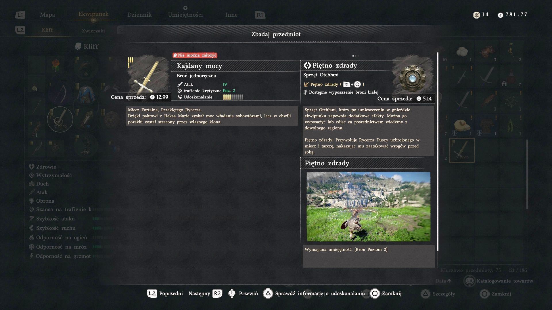 - Główna nagroda za zabicie Przeklętego rycerza to jednoręczny Kajdany mocy, z którego korzystał Fortain. Ma on na wyposażeniu sprzęt Otchłani Piętno zdrady i pozwoli Wam wspomagać się własnym sobowtórem.