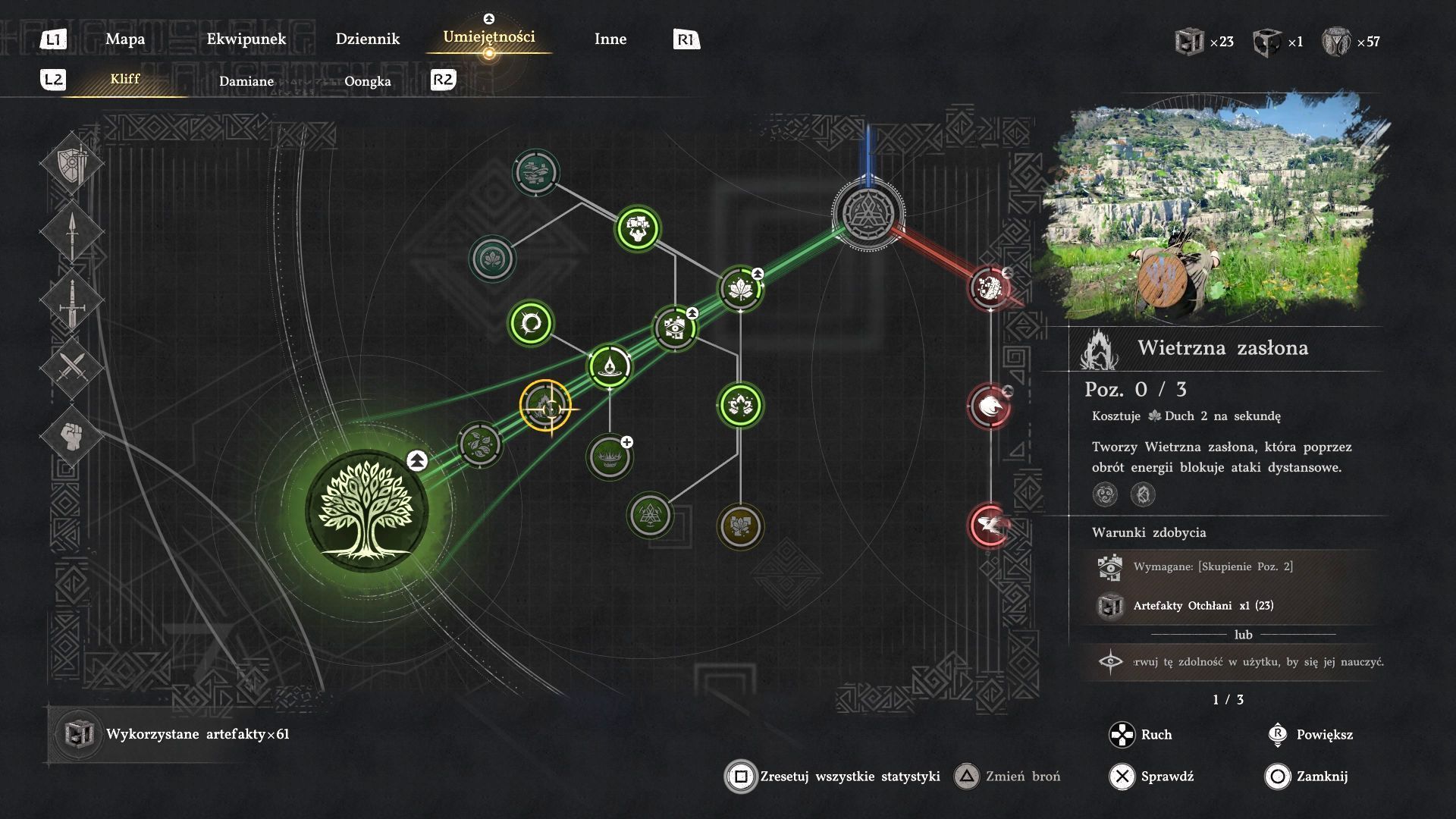 Walkę bardzo znacząco może ułatwić umiejętność Wietrzna zasłona, którą znajdziecie na zielonym drzewku umiejętności (obrazek). Niestety ma ona dodatkowe wymagania i musicie najpierw odblokować: