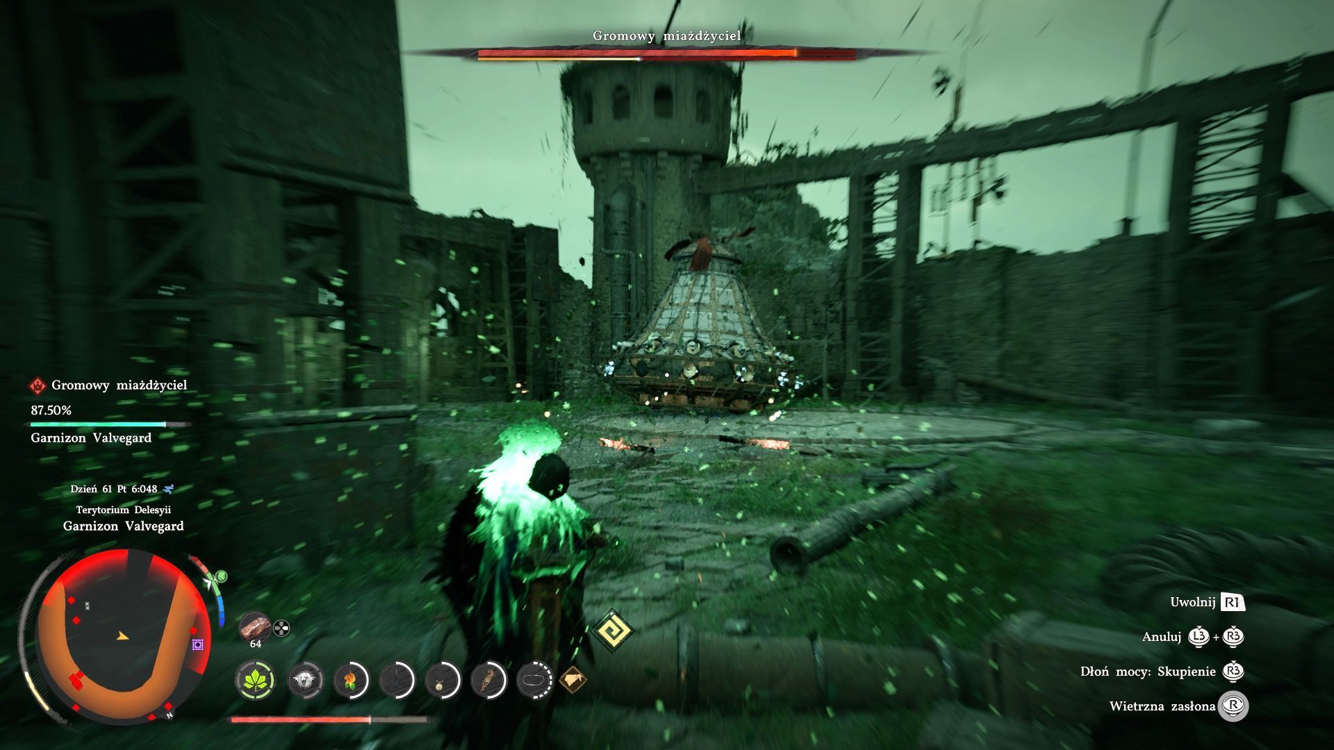 - Oprócz nabycia zalecanych zdolności zadbajcie o zapas żywności i bolusów dłoniowych na wypadek porażki lub utraty dużej ilości zdrowia. Dodatkowo polecamy założyć elementy wyposażenia, które zwiększają odporność na grzmot, bo boss będzie dużo atakował błyskawicami.
