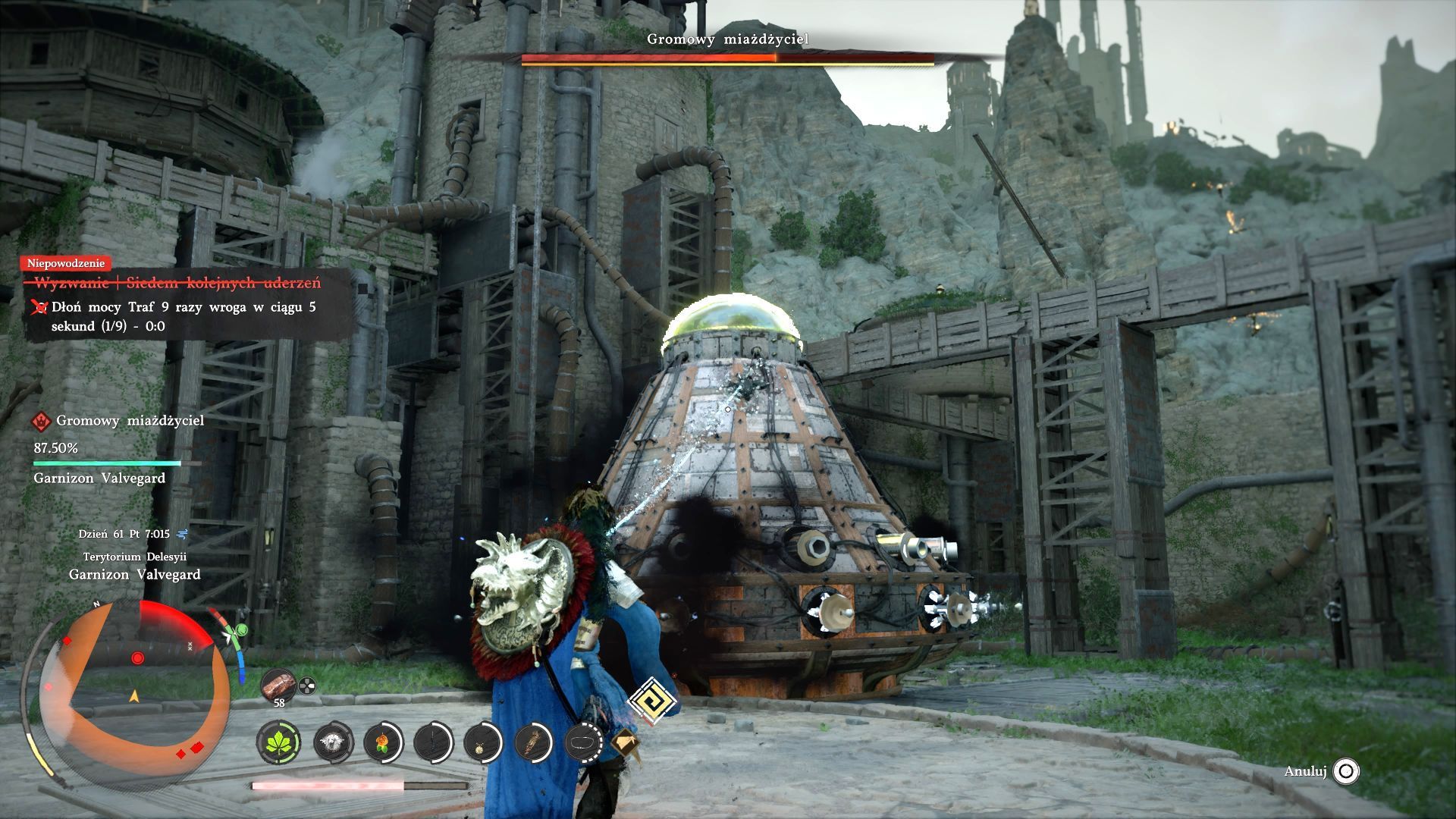 W jedenastym rozdziale gry Crimson Desert czeka Was wymagające starcie z bossem Gromowy Miażdżyciel z Garnizonu Valvegard. Na tej stronie poradnika omówiliśmy ten trudny pojedynek będący częścią głównej misji Klucze do fortecy. Nasz opis podpowiada przede wszystkim jak używać Wietrznej zasłony do łatwego osłabiania bossa. Oprócz tego dowiecie się o najważniejszych atakach Piorunoczołgu, a także o nagrodach przewidzianych za zniszczenie wielkiej maszyny.