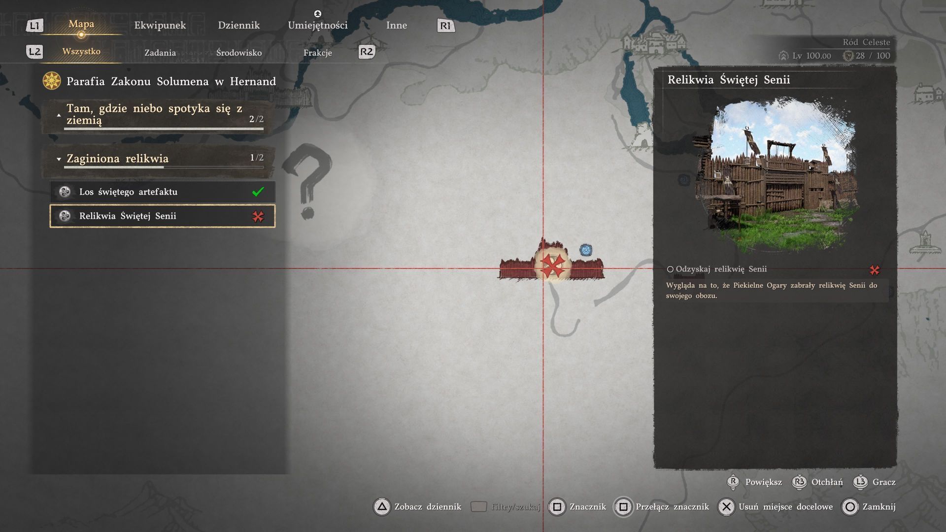 - Po wygranym pojedynku powinniście automatycznie przejąć kontrolę nad fortem i pojawią się tu sojusznicy. Pozwoli to w spokoju znaleźć Relikwię Świętej Senii - to duży obiekt pokazany na obrazku.