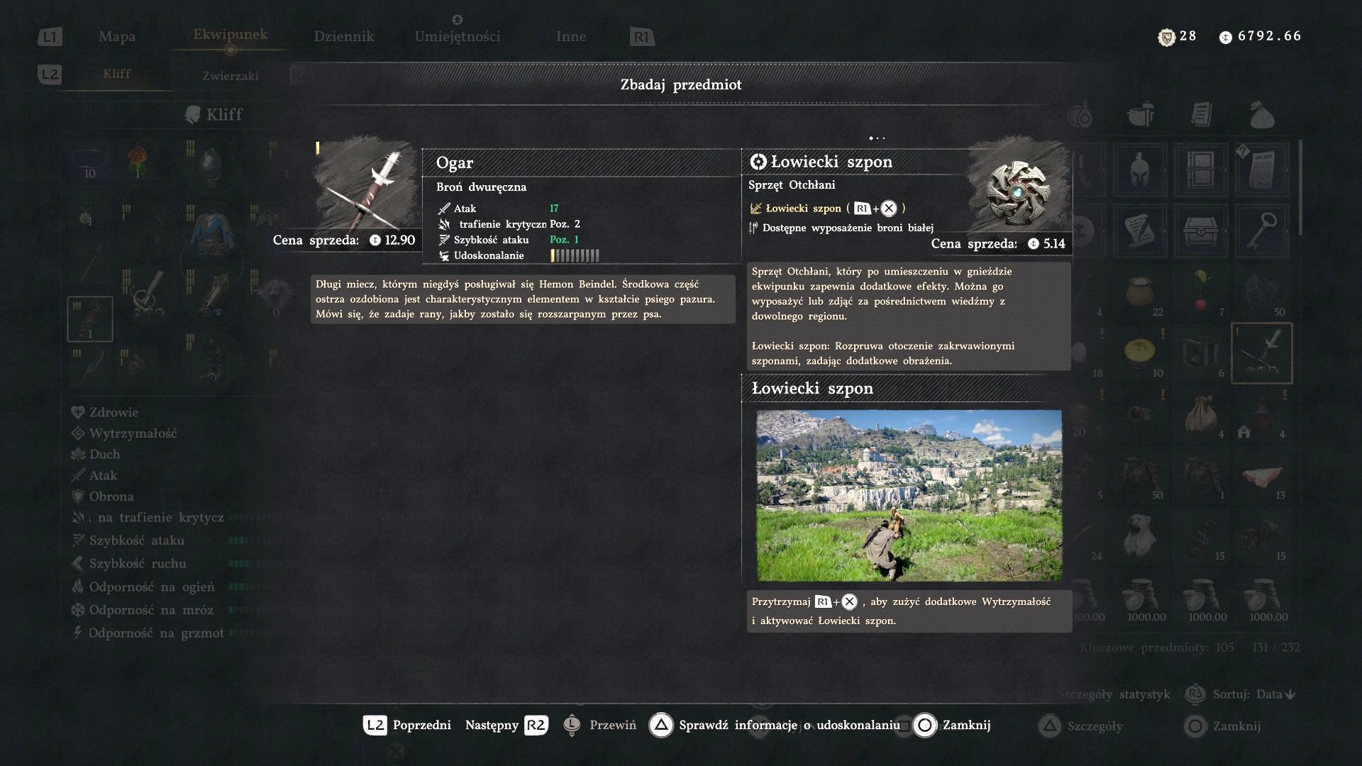 - Unikalną nagrodą za pokonanie Hemona Beindela jest dwuręczny miecz Ogar. Ma on zamontowany sprzęt Otchłani Łowiecki szpon - to specjalny atak z rozpruwania szponami inicjowany kombinacją przycisków. Ponadto możecie liczyć na premie do siły i szybkości ataku.