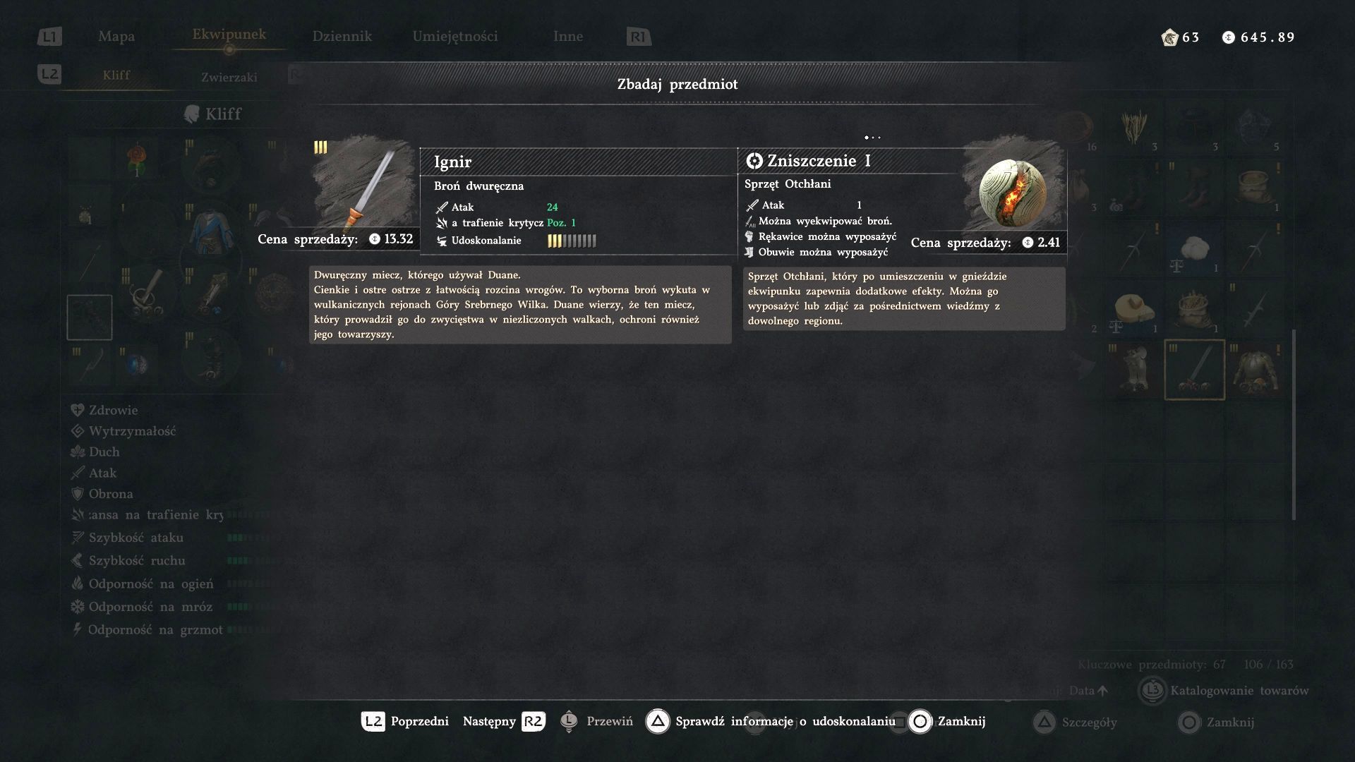 - Ignir - to dwuręczna broń biała, sprzęty zwiększają atak i szansę na trafienie krytyczne;