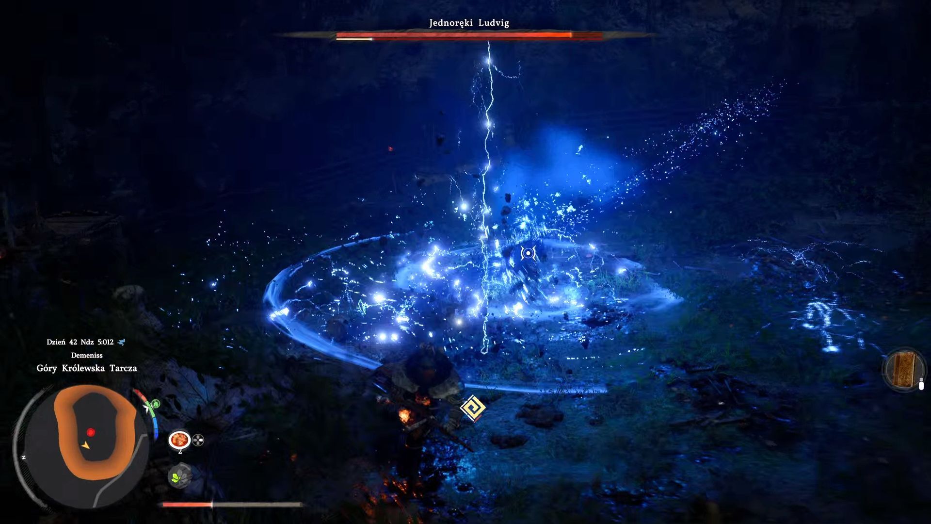 - Jednoręki Ludvig lubi 2 razy atakować bardzo długim ostrzem z błyskawicami. Najlepszą reakcją jest szybkie oddalenie się od bossa (nie wyskoczcie poza ogrodzenie, bo rozpocznie się odliczanie do przegrania walki). Alternatywnie możecie polegać na idealnych uskokach, by nie zderzyć się z ostrzem.