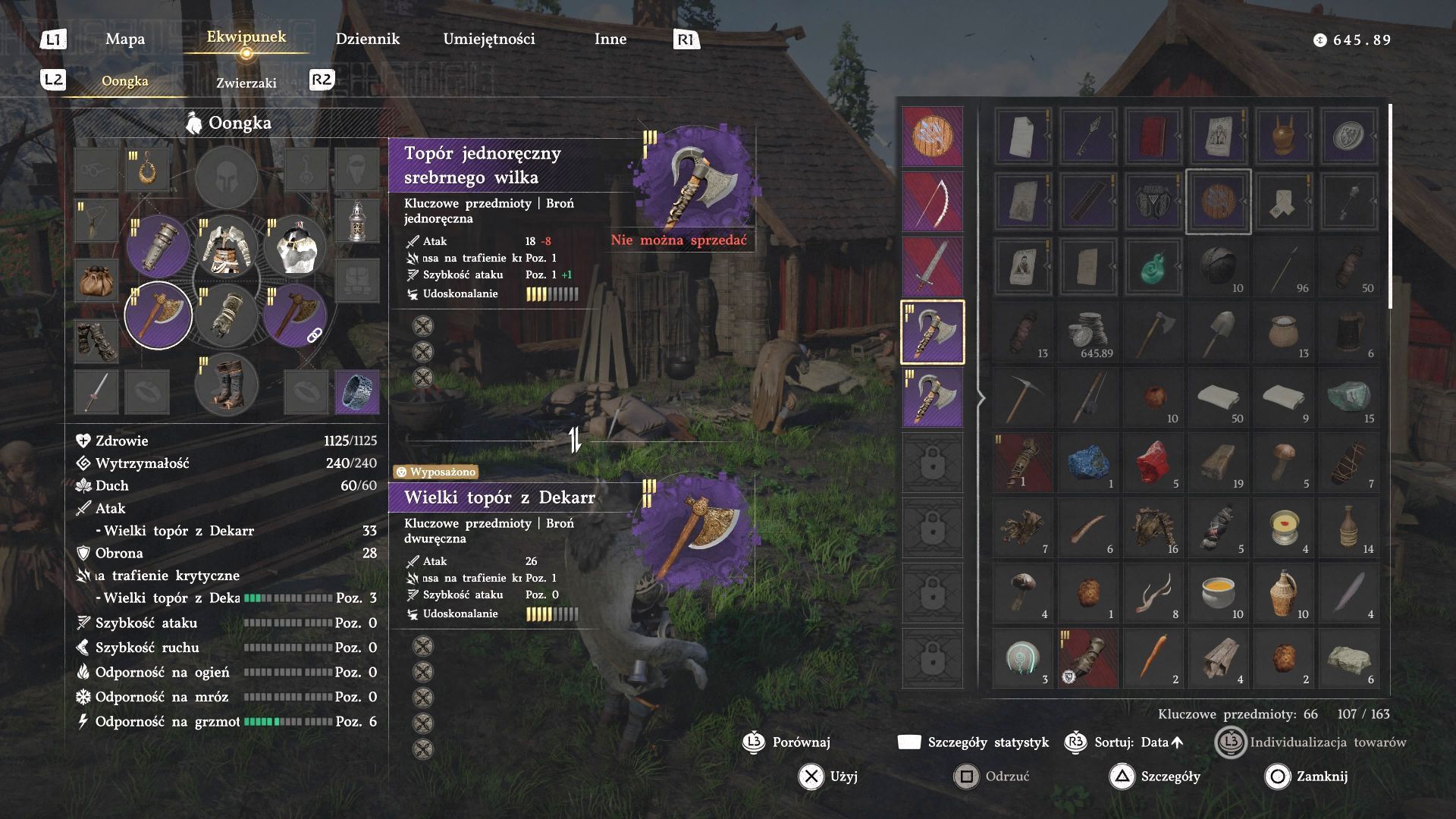 - Inwentarz i umiejętności grywalnych postaci są współdzielone, ale są pewne różnice i powinniście się z nimi zapoznać zanim wyruszycie na poszukiwania Ludviga. Oongka domyślnie ma do wyboru wielki dwuręczny topór lub parę jednoręcznych toporów. Najlepiej jest potrenować ich używanie na zwykłych bandytach i postawić na oręż, z którym lepiej się czujecie. Dodatkowo polecamy odwiedzić kowala żeby ulepszyć "startowe" bronie i elementy pancerza Oongki.