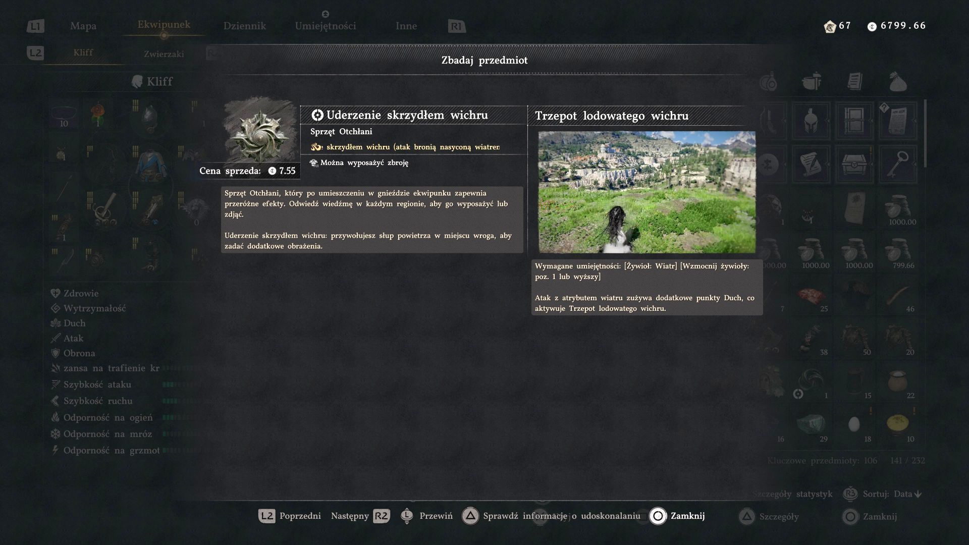 - Uderzenie skrzydłem wichru - To sprzęt Otchłani dla zbroi, który pozwala przywołać słup powietrza i zadać obrażenia wrogom w zasięgu ataku.