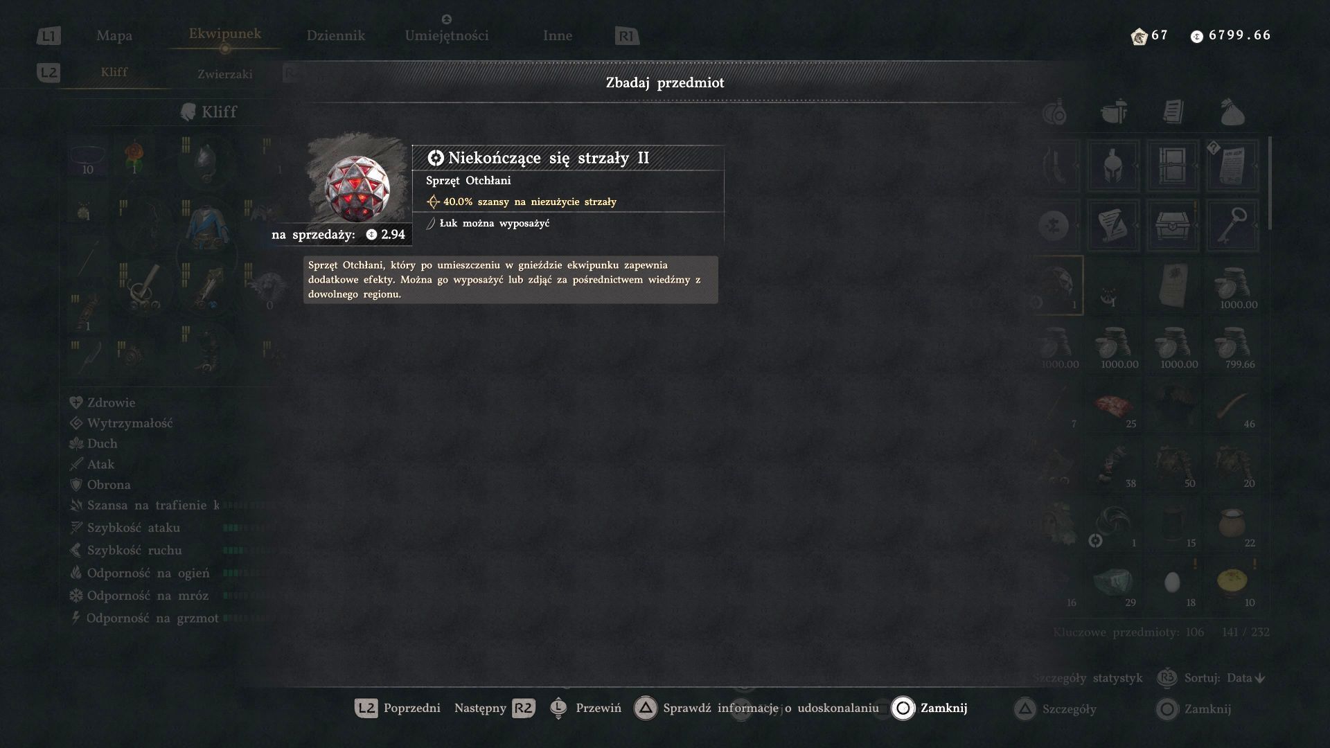 - Niekończące się strzały II - To sprzęt Otchłani stworzony dla łuków. Daje on 40% szansę, że wystrzelona strzała nie zostanie zużyta.