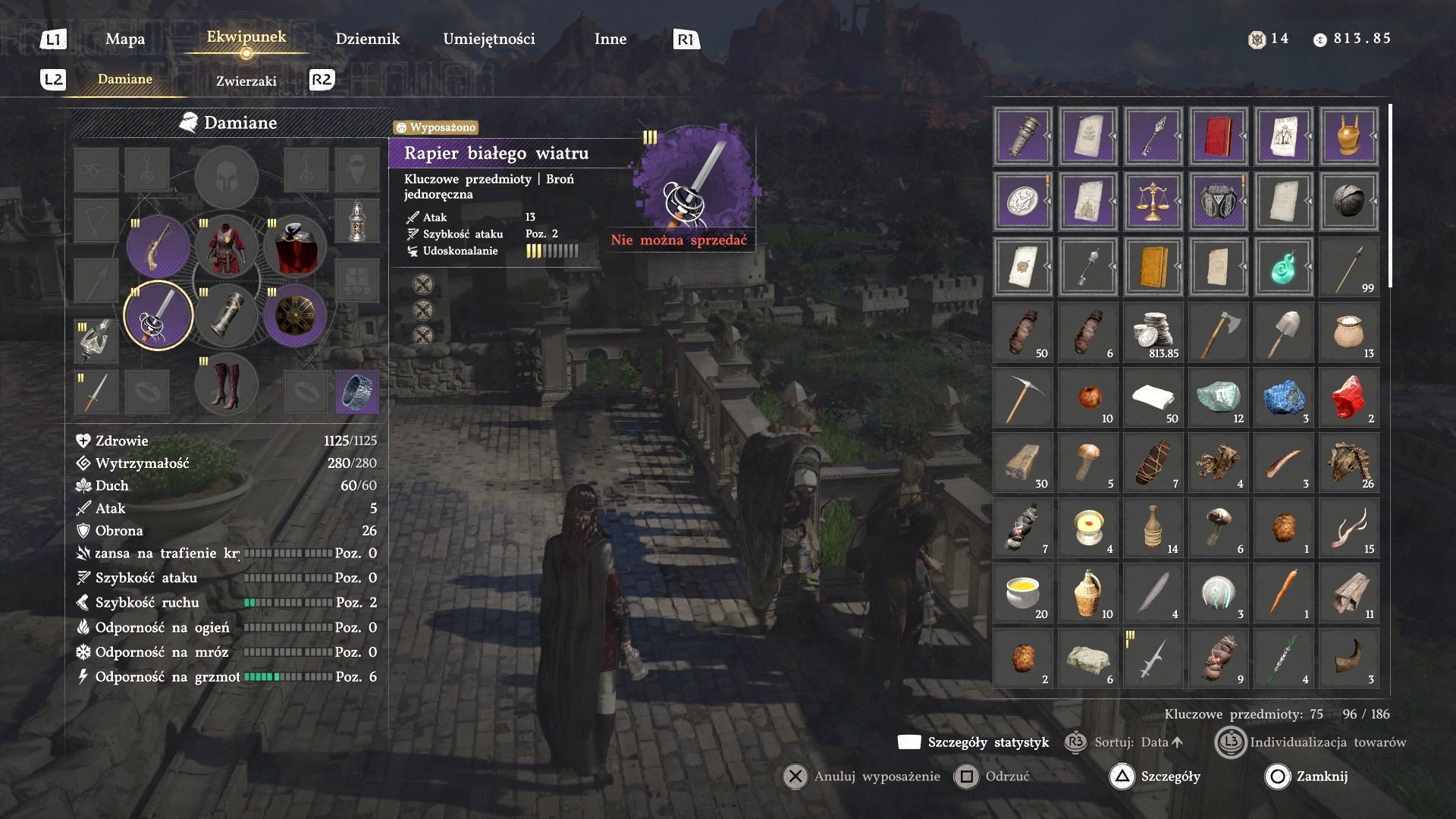 - Oficjalne skórzane obuwie rycerza - jest ono dla Damiane. Odporność na grzmot i mróz (poziom 1), szybsze wspinanie.