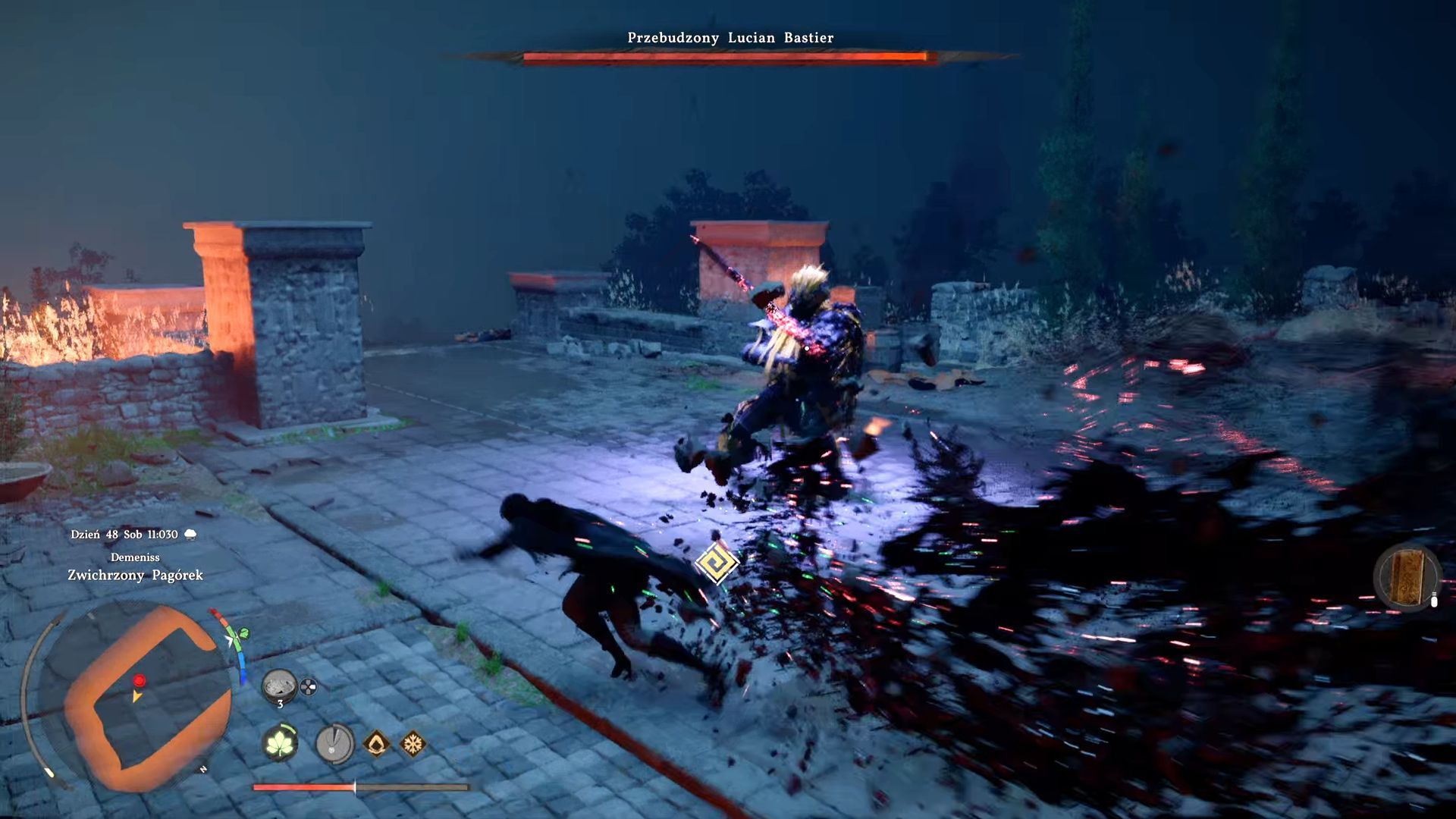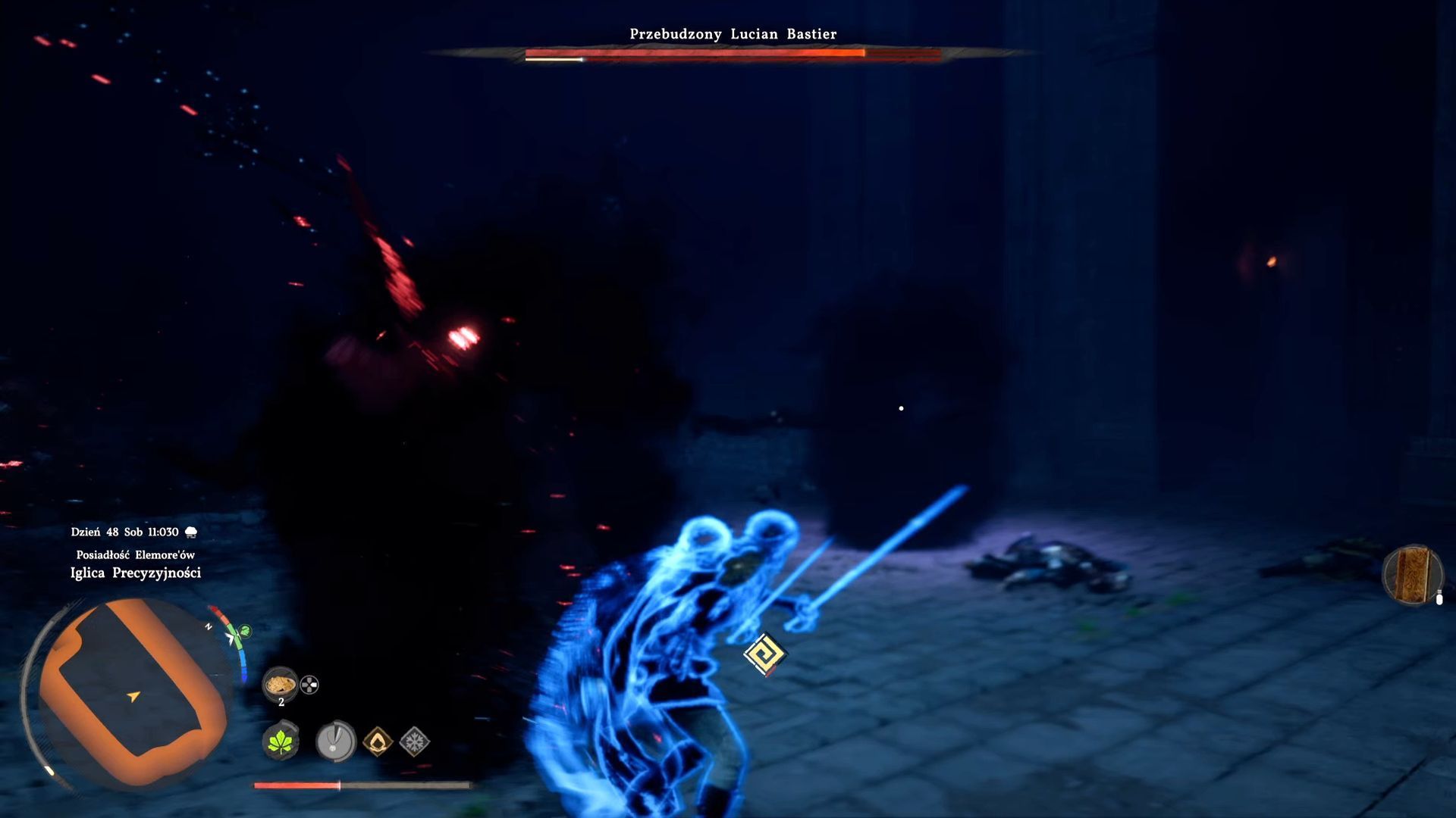 - Pojedynek z bossem jest dwuczęściowy. Najpierw będziecie walczyć z Lucianem w jego ludzkiej formie i musicie pozbawić bossa niebieskiego paska energii.