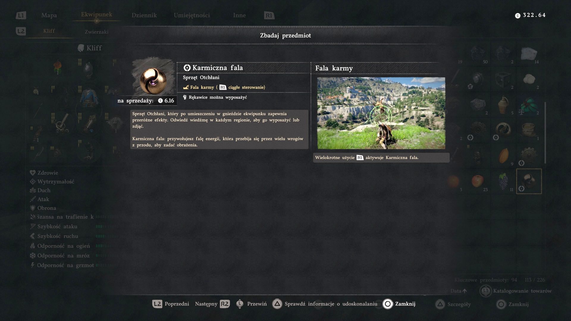 - Karmiczna fala - to sprzęt Otchłani do umieszczenia w rękawicach. Może on aktywować tytułowy specjalny atak.