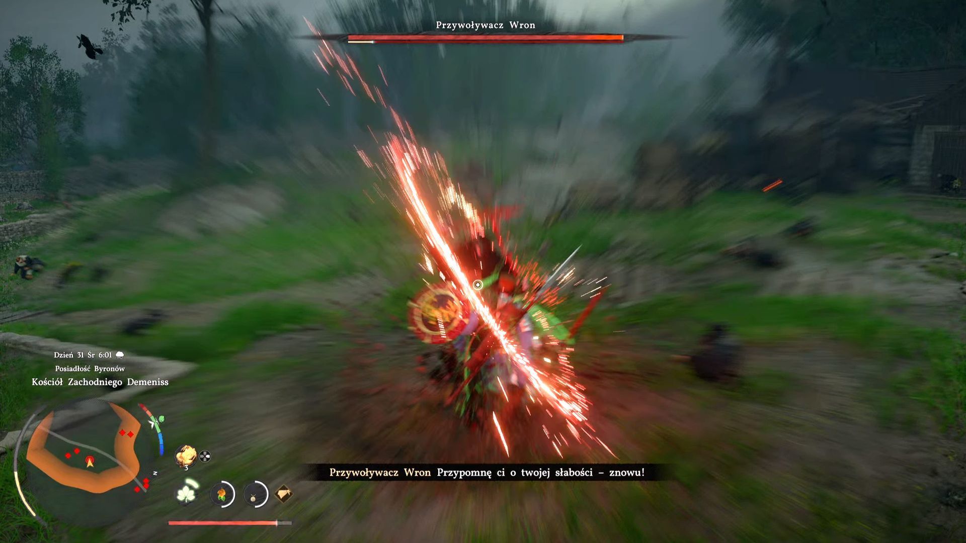 - Pierwszy pojedynek z Przywoływaczem Wron jest prostszy i znacznie krótszy, bo bossa tylko raz trzeba pozbawić paska zdrowia.