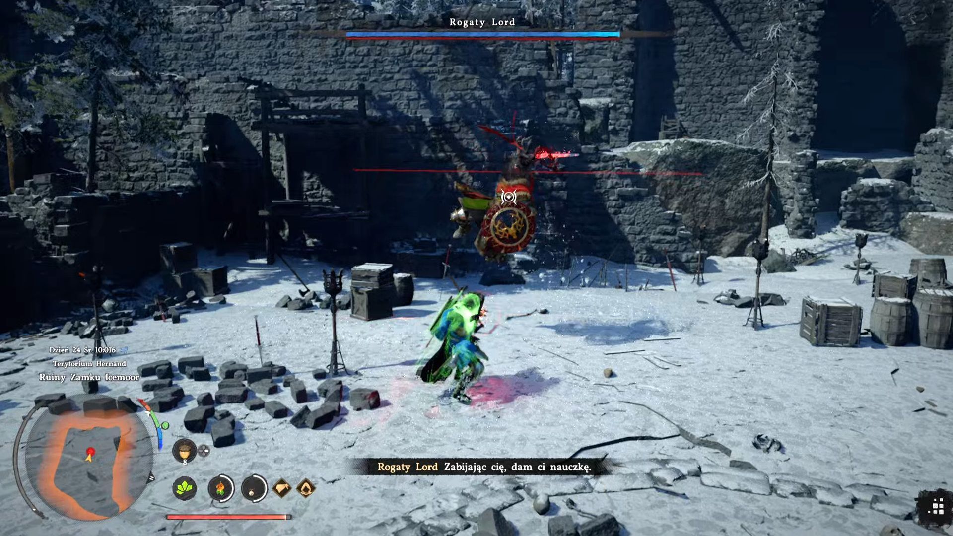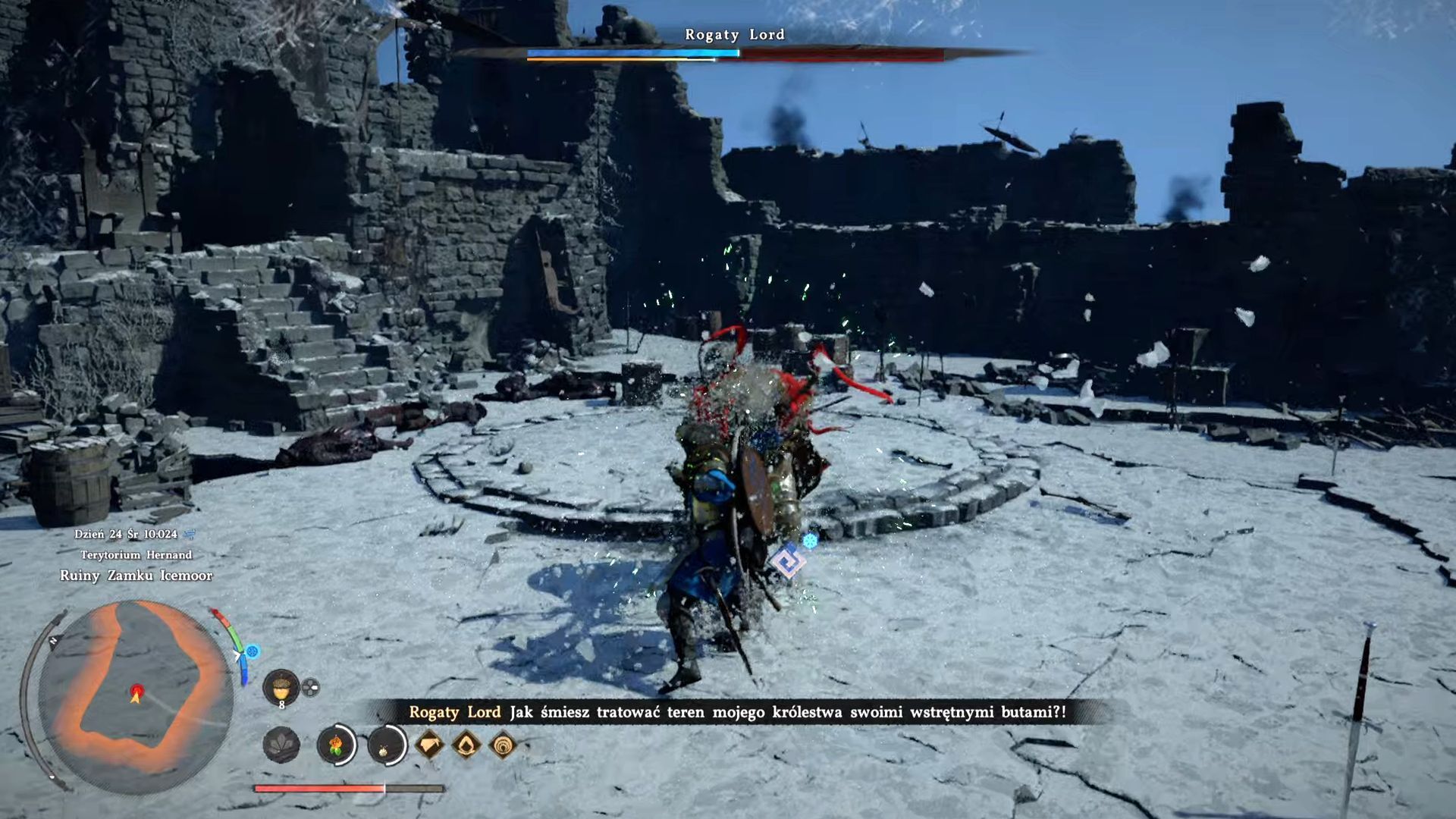 - W ramach pobocznego zadania Urwany szlak docelowo dotrzecie do Ruin Zamku Icemoor, które znajdują się w zachodniej części regionu Hernand. Rozpocznie się tam quest Król upadłego królestwa ze stoczenia pojedynku z oszalałym Rogatym Lordem.