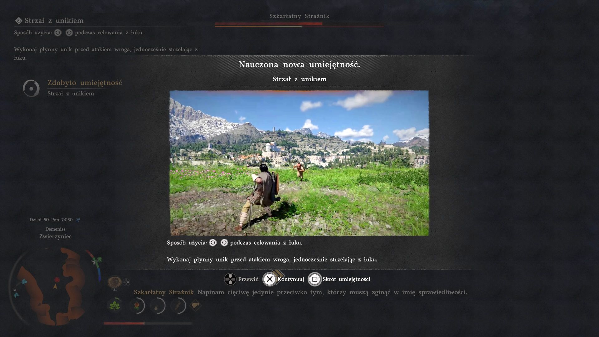 - Jest szansa, że podczas tego starcia możecie nauczyć się umiejętności Strzał z unikiem. Przyda się ona Kliffowi podczas używania łuku. Dwukrotne wciśnięcie przycisku uniku pozwoli na odpalenie uniku połączonego z wypuszczeniem strzały.